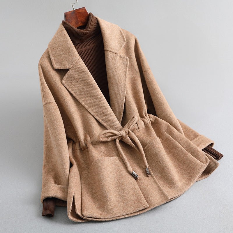 Introducing the Adeline Herringbone Wool Coat — a fashion-forward and cozy addition to your winter wardrobe. This coat, equipped with two front pockets and a drawstring, exudes style and practicality. The lapel collar adds a touch of sophistication, creating a versatile ensemble.