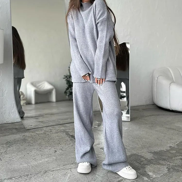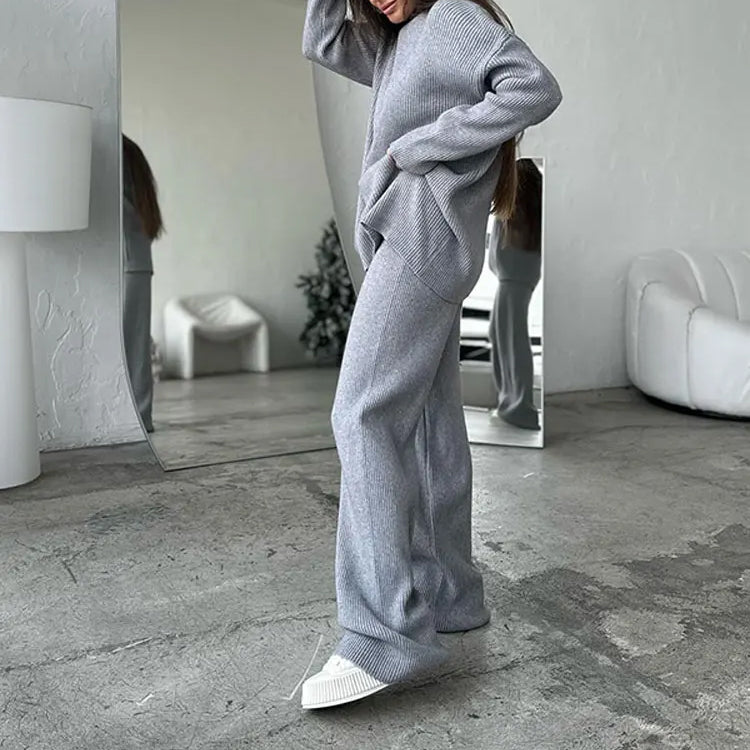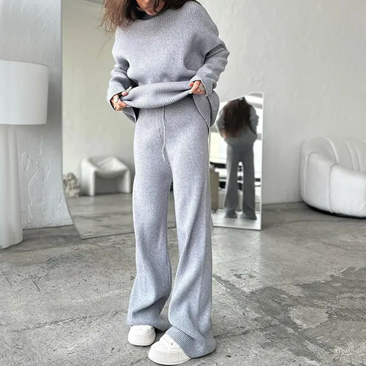 The Adeline Vienna Leisure Knit Set, featuring a casual sweater and loose-fit pants, is the perfect blend of laid-back sophistication and contemporary style.