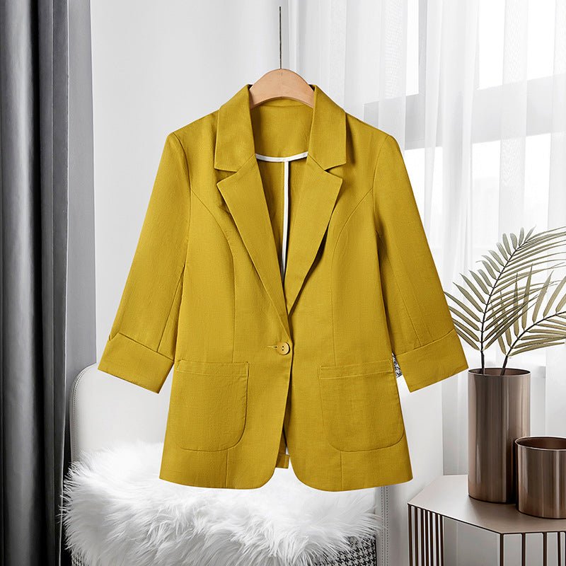 With its vibrant colors and 3/4 sleeves, the Adelaide Linen Blazer adds a touch of elegance to any outfit. Whether you're dressing up for a special occasion or adding a pop of color to your everyday look, this blazer is sure to make a statement.