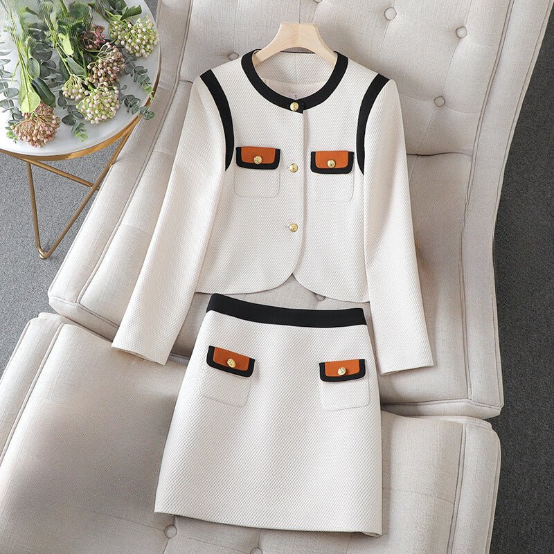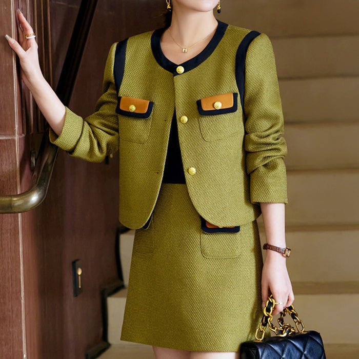 Step into a world of old-world glamour with the Amelie Fleur Antique Allure Duo Set. This set combines vintage charm with modern sophistication, featuring a blazer and matching skirt that exude classic style. The button closure adds a polished finish to this elegant ensemble.