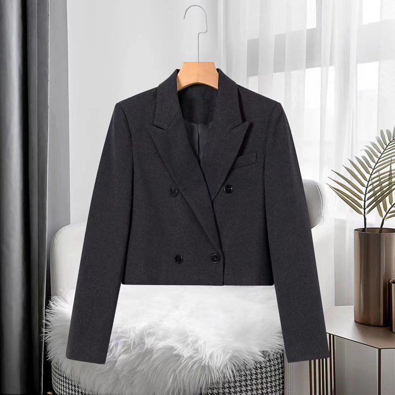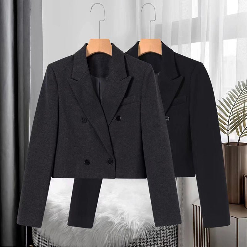 Introducing the Amelie Fleur Effortless Grace Blazer, a symbol of refined elegance and sophistication. This cropped blazer, available in timeless gray and black hues, exudes effortless style and versatility. With its double-breasted design, the Effortless Grace Blazer adds a touch of timeless charm to any outfit.