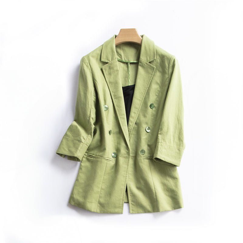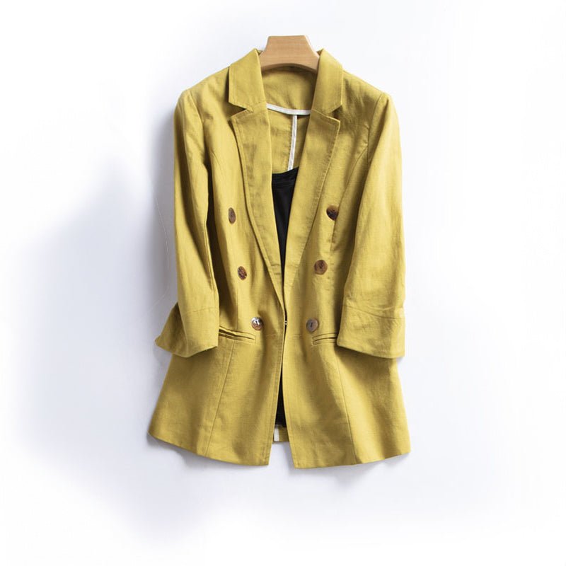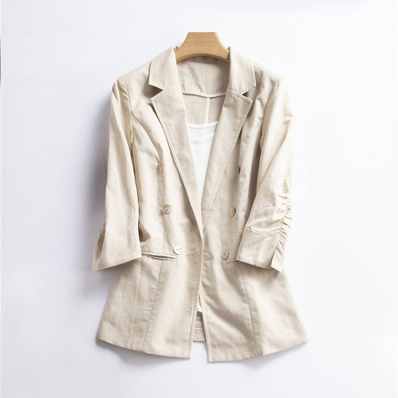 Experience the joy of spring in style with the Amelie Fleur Juno Linen Blazer, the perfect addition to your wardrobe for embracing the season with grace and elegance. With its slightly longer silhouette and 3/4 sleeves, the Juno Linen Blazer offers a flattering and versatile look that transitions seamlessly from day to night.