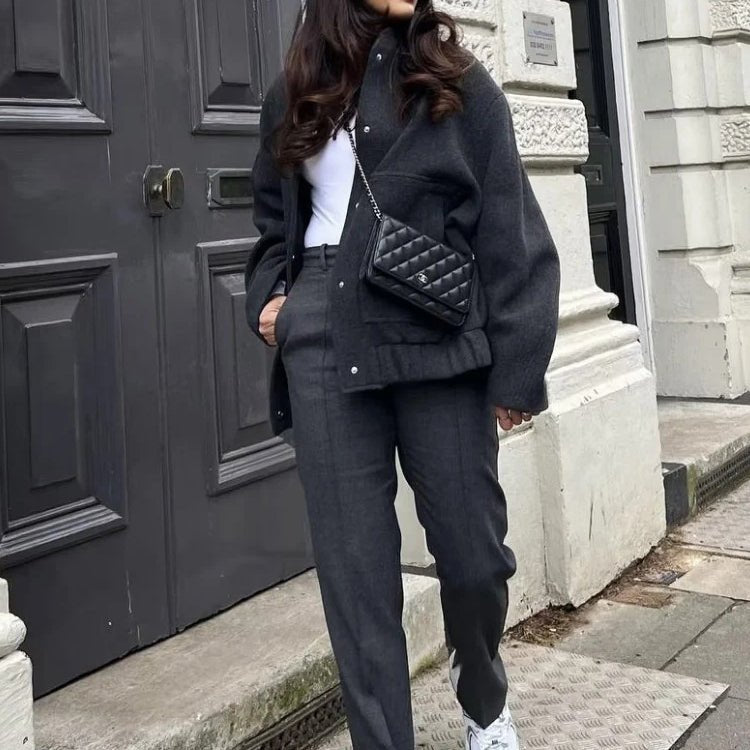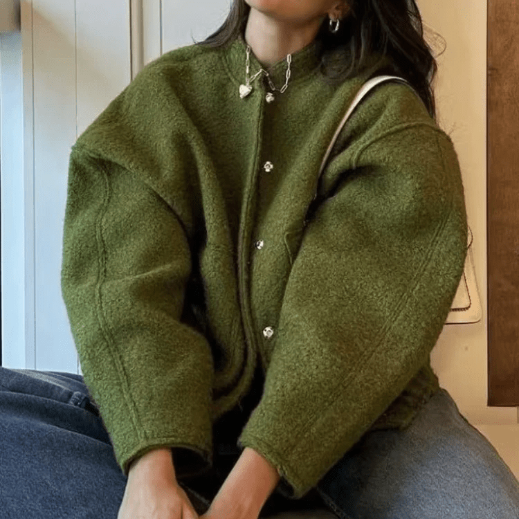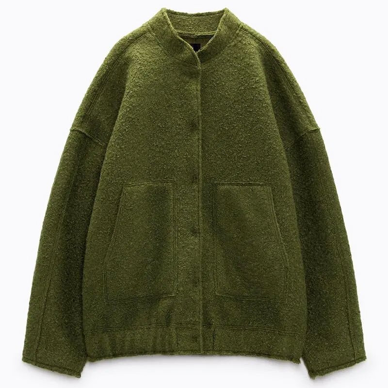 Introducing the Bella Bomber Jacket, a true fusion of style and comfort. Its oversized silhouette offers a relaxed yet trendy vibe, perfect for casual outings. What sets it apart are the hidden buttons that add a touch of elegance while maintaining a clean, minimalist aesthetic.