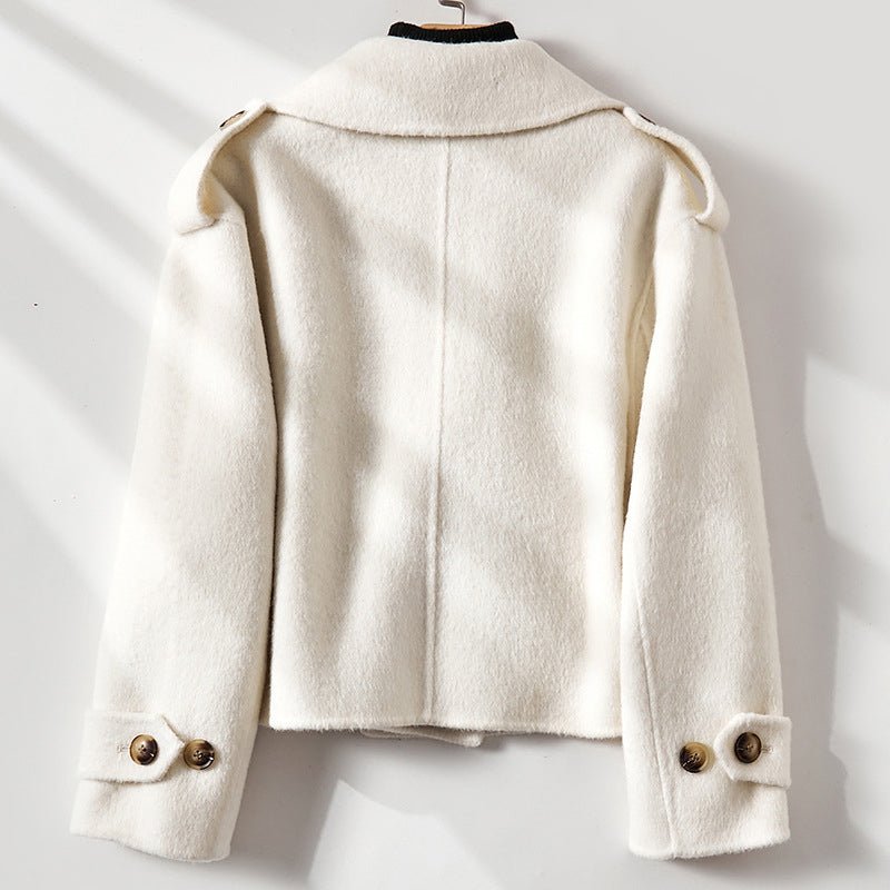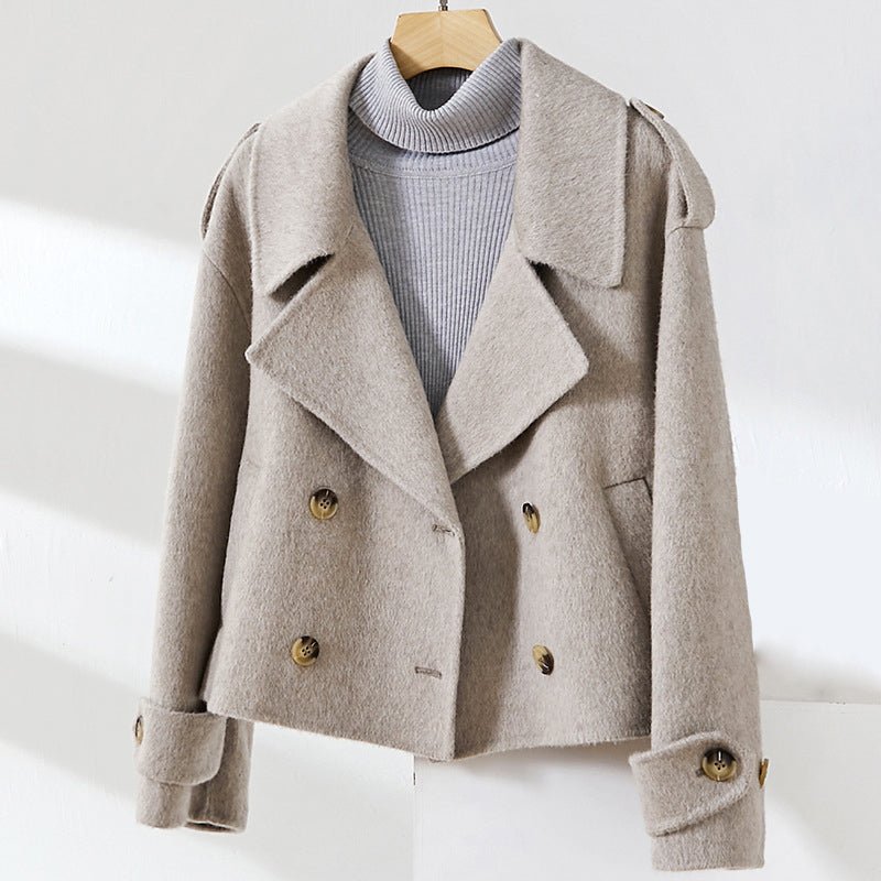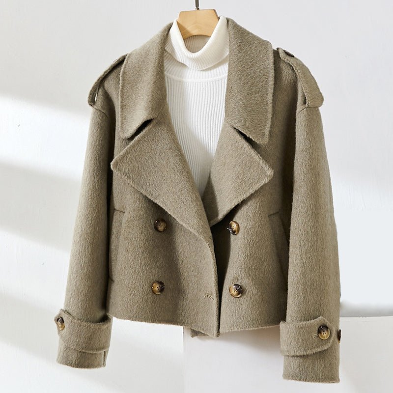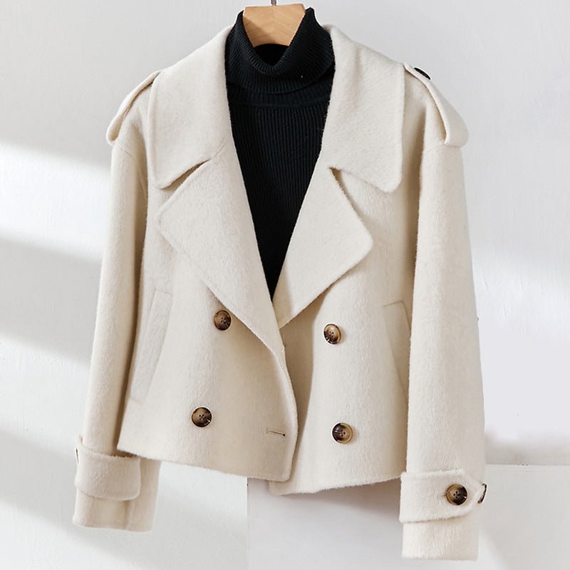 The Bella British Cropped Wool Coat is a harmonious fusion of sophistication and contemporary flair, designed to redefine your winter wardrobe. Crafted with meticulous attention to detail, this coat is a testament to timeless style and modern allure.