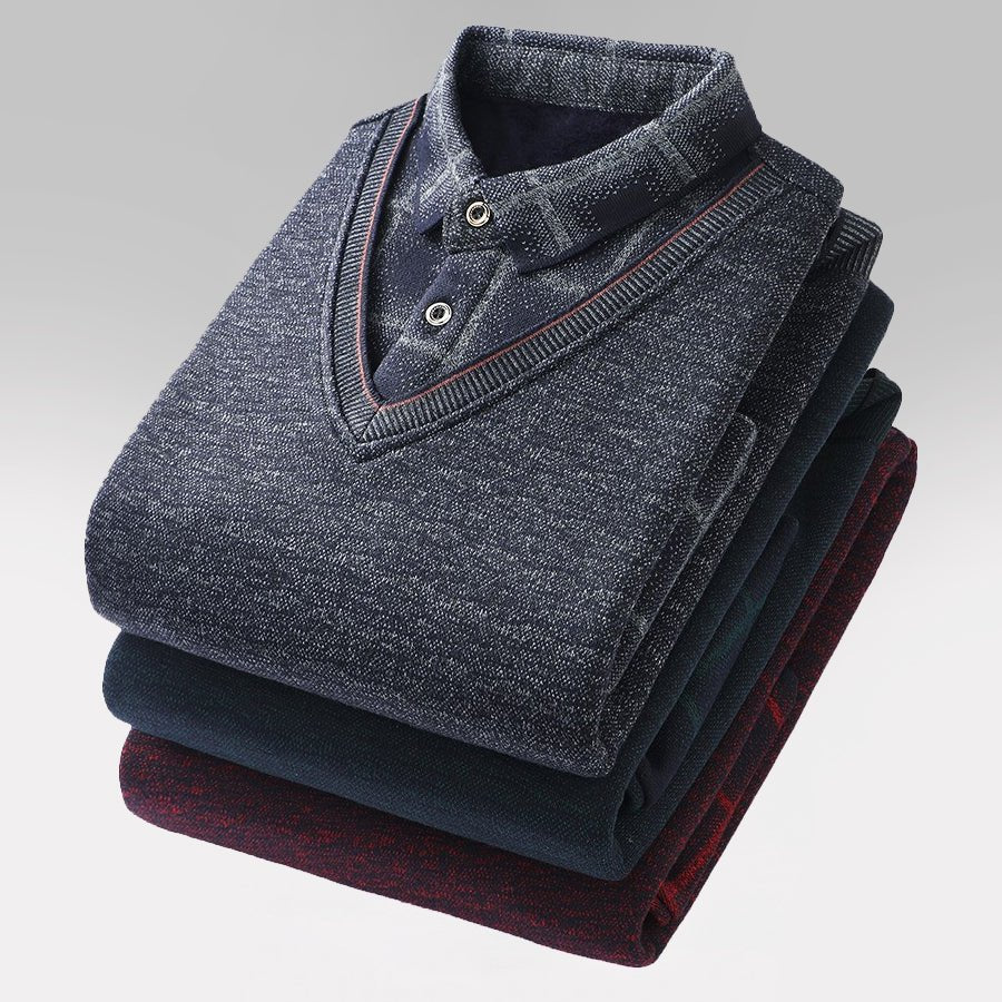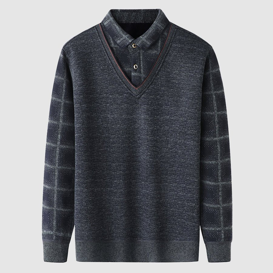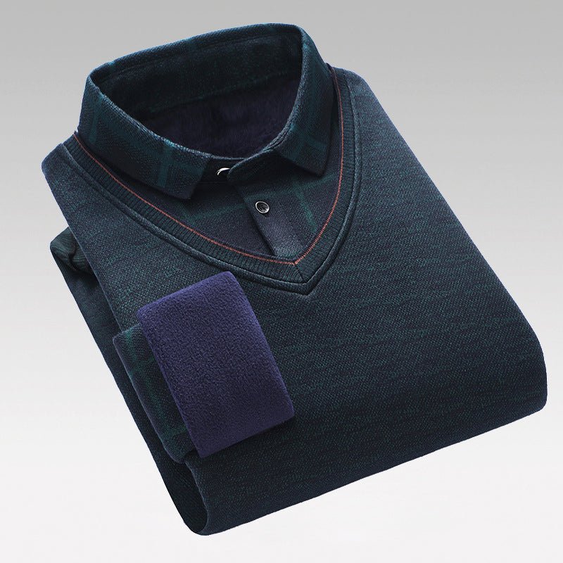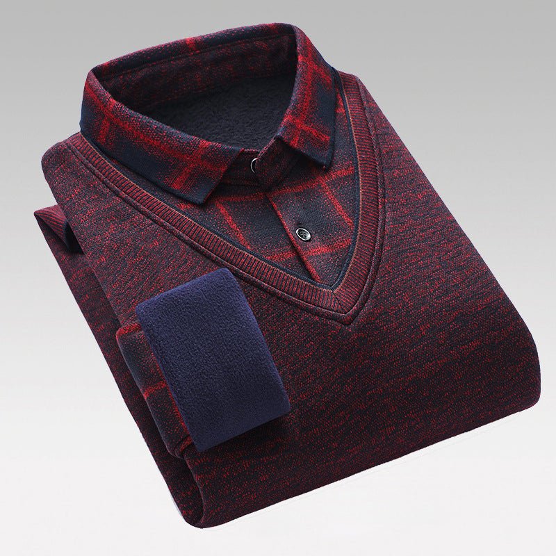The Ben Smith Elegant Collar Sweater not only exudes sophistication with its fake shirt collar but also ensures a cozy feel with its fleece lining. This added layer of warmth makes it a comfortable and stylish option for cooler days, seamlessly blending elegance with practicality in one versatile garment.