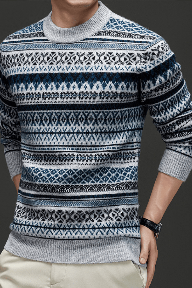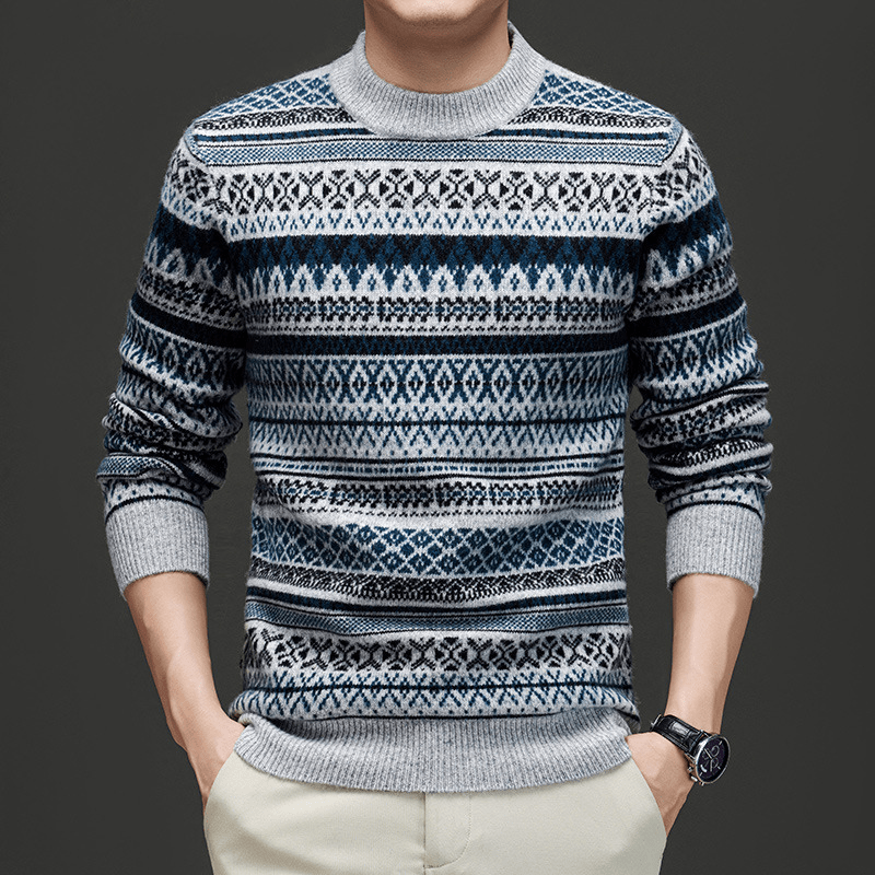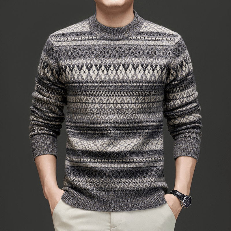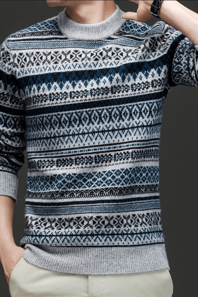 This Ben Smith Jacquard Wool Sweater, a pure wool sweater, combines timeless stripes with modern color matching, making it a standout piece for any occasion.