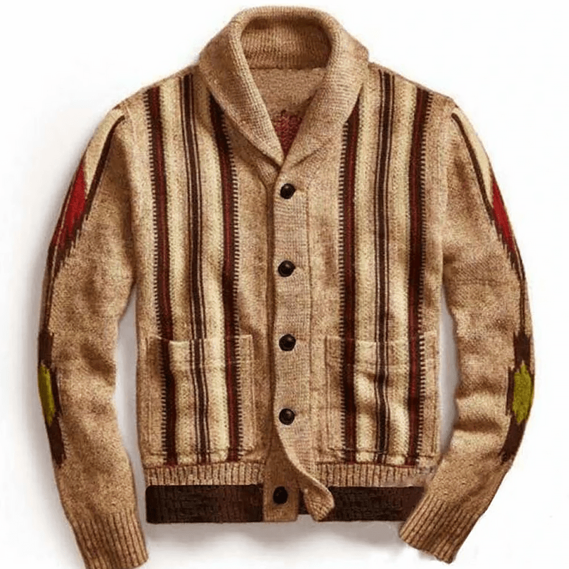 The Ben Smith Retro Cardigan is a true fashion gem, featuring a delightful combination of striped and folk patterns. This cardigan carries a sense of vintage charm while remaining stylish and versatile.