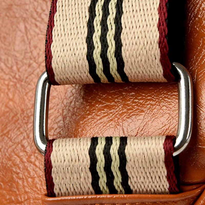 - Adjustable striped canvas strap