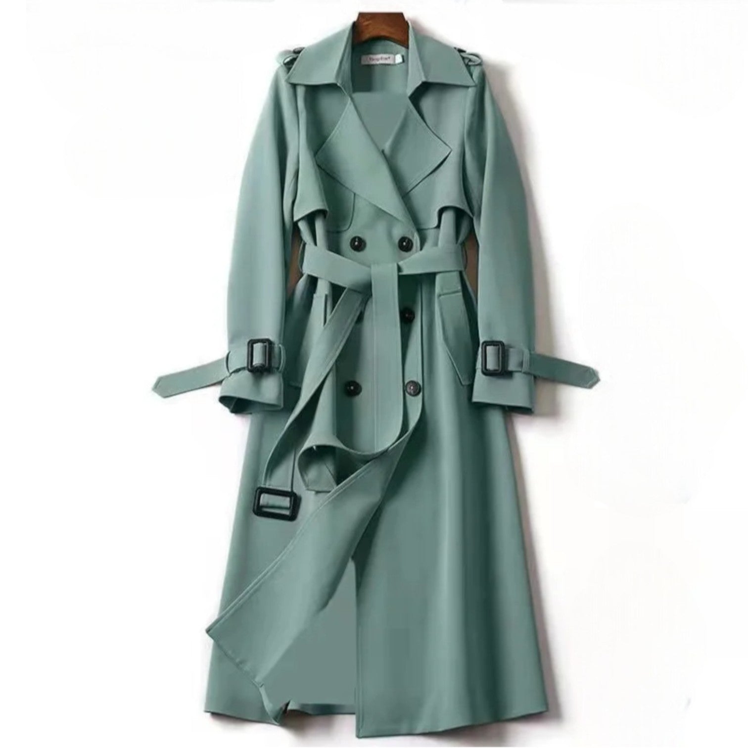 Tailored in a clean, full-length cut, this trench coat falls in a delicate silhouette with a waist-defining belt, shaping a confident figure that moves as ethereal as an autumn breeze.