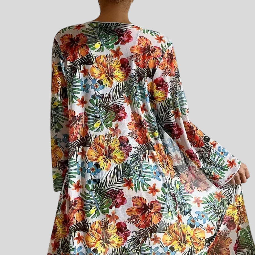 The Ellie Elegant Tropical Floral Bikini Set with Cover-Up offers colorful prints and a flattering fit, perfect for sunny getaways. Its breathable fabric and stylish design ensure comfort and confidence at the beach or pool.