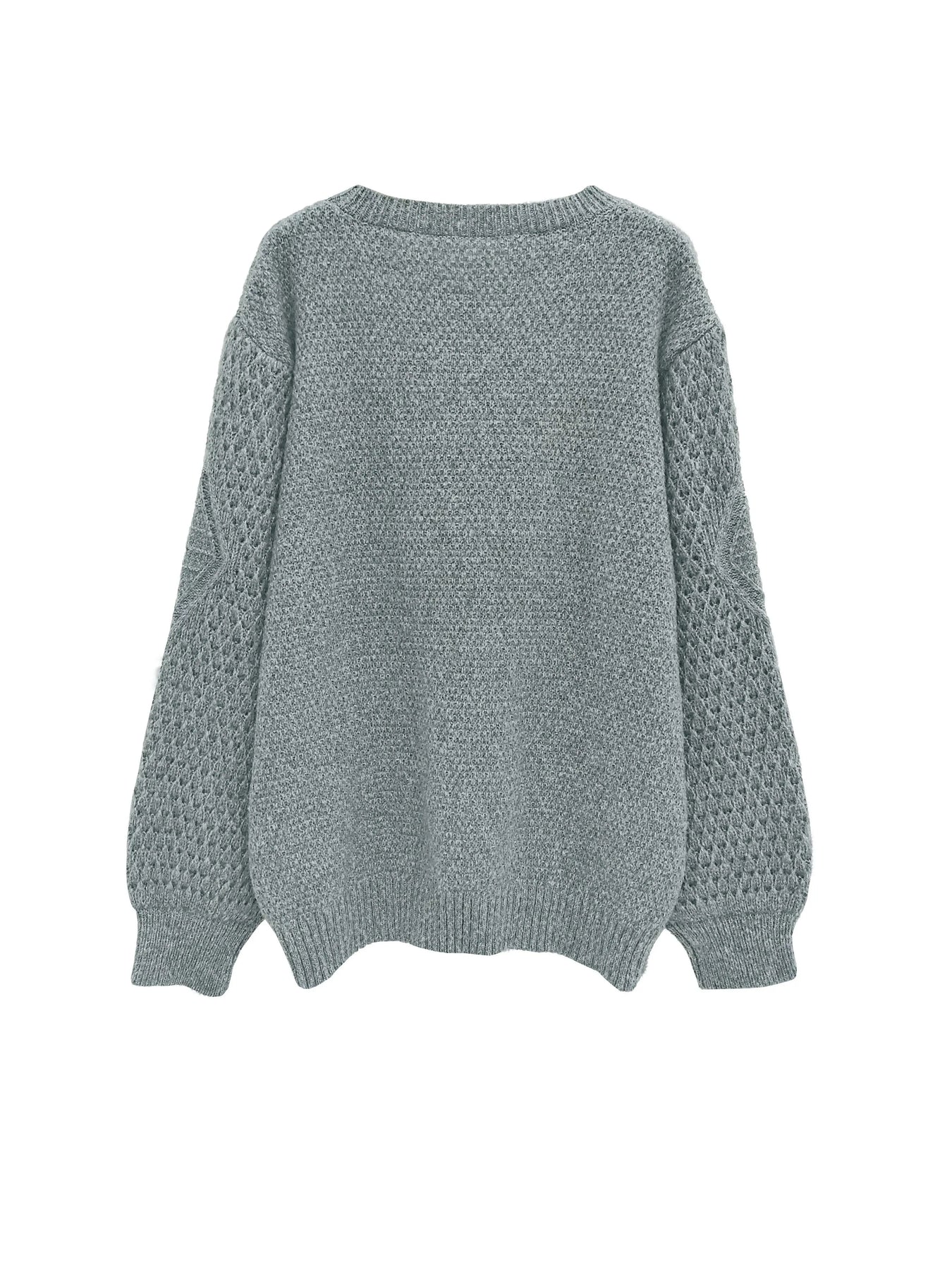 Textured Sleeves: The intricate knit design on the sleeves adds a chic and unique touch to this cozy sweater.