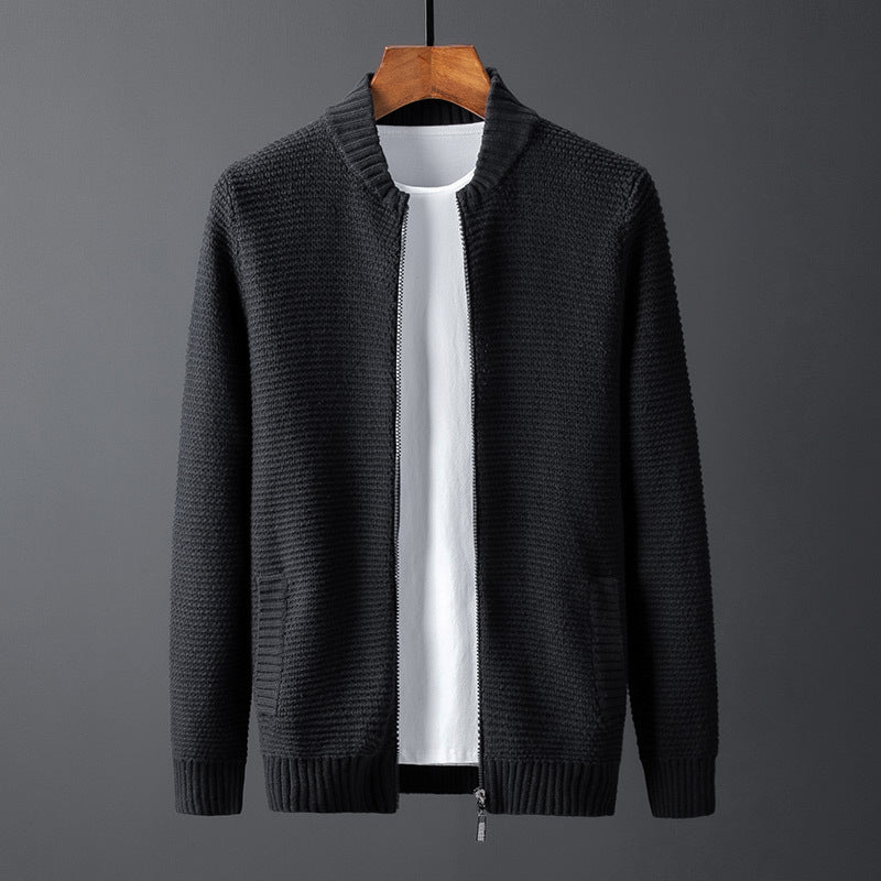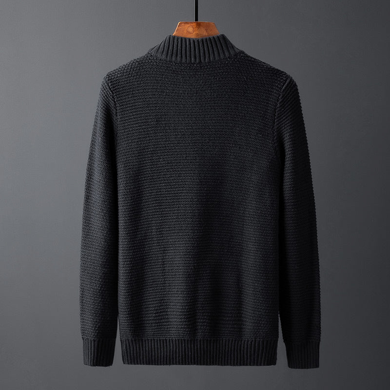 This cardigan features a comfortable half turtleneck, providing a touch of sophistication while keeping you cozy. The zipper closure adds a modern and practical element, allowing you to adjust your comfort level with ease. Whether you're heading to the office or a casual outing, this knitted cardigan is a versatile choice, ensuring you stay both fashionable and comfortable throughout the season.
