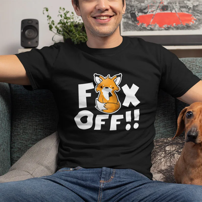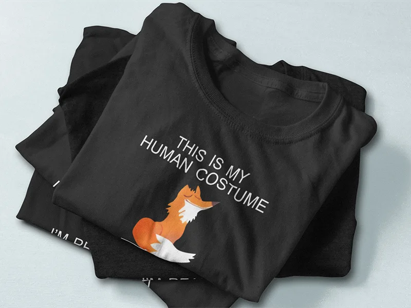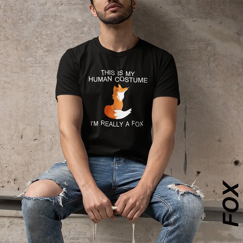 Fox T shirt EU Size This Is My Human I'm Really A Fox Funny Cute Animal Black 100% Cotton Tshirt