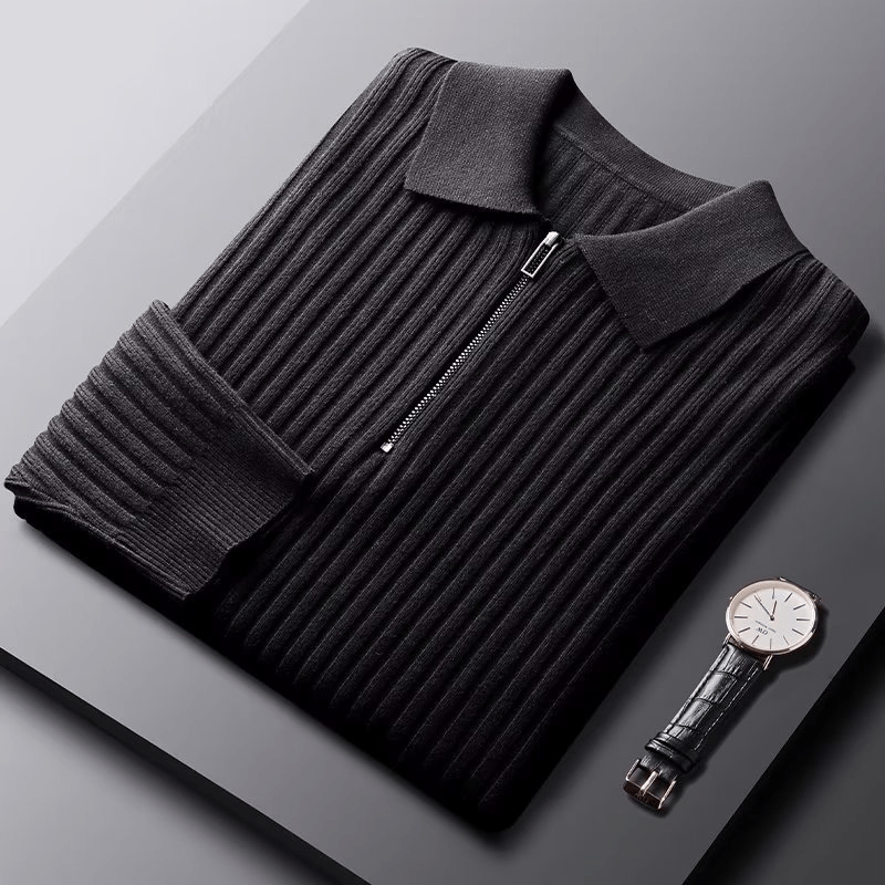 The Frank Hardy Quarter Zip Sweater combines a timeless lapel design with a sleek quarter zip, making it perfect for both business and casual occasions. Its solid color and refined look make it easy to layer or wear solo for a polished appearance.