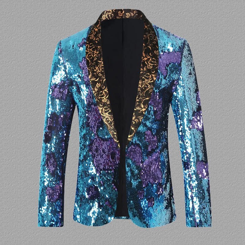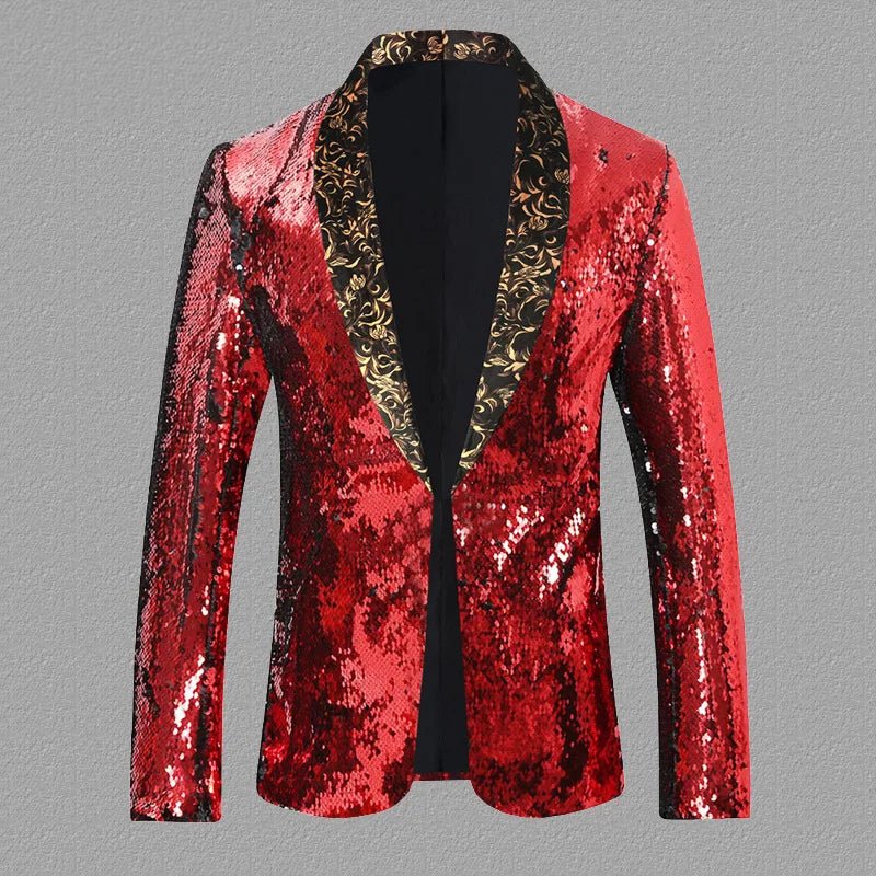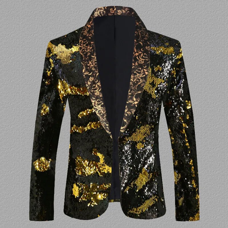 Make a dazzling statement with the Gary Hollings Jazzy Blazer, a show-stopping piece designed to steal the spotlight during the holiday season. Crafted from stunning sequin fabric, this blazer is not just an outfit choice; it's a celebration.