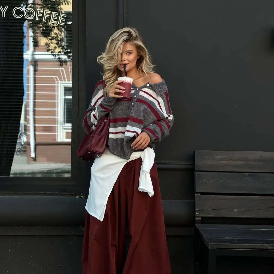 Trendy Stripes: Bold, multi-colored stripes bring a stylish, modern touch to your winter look.