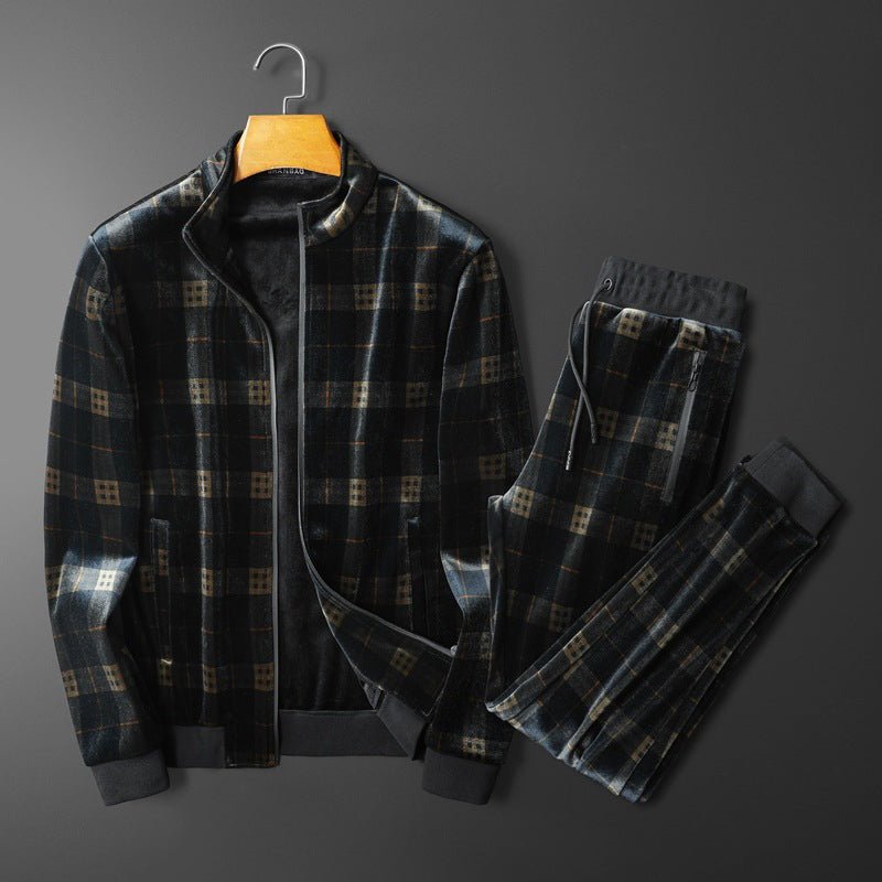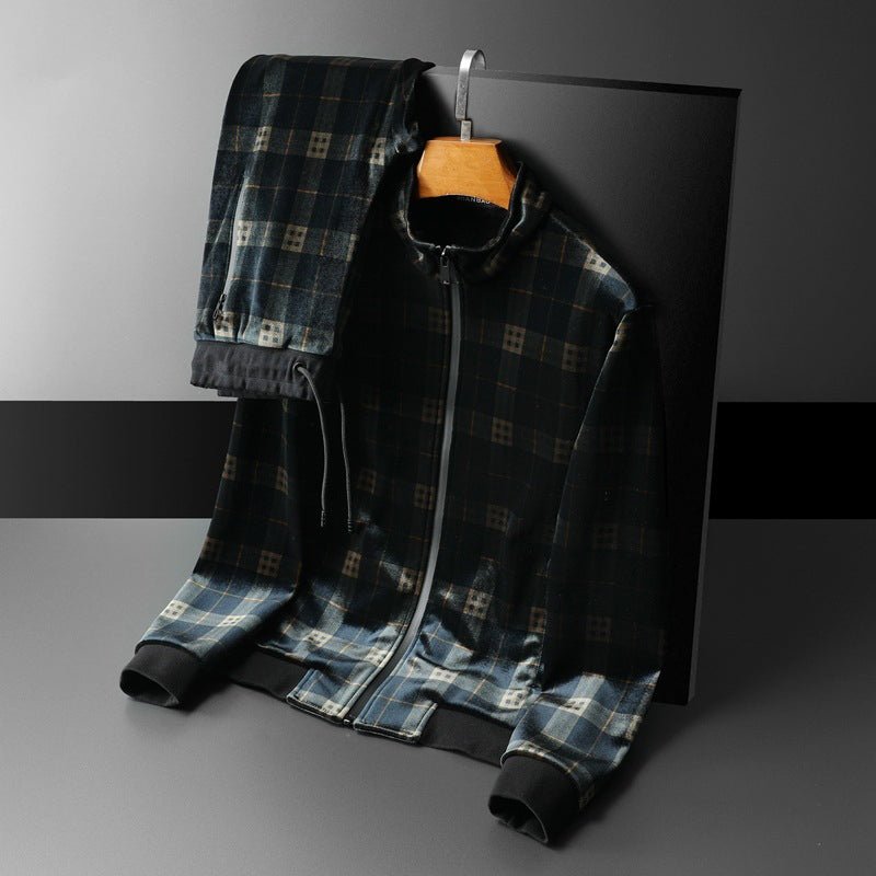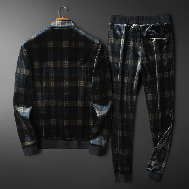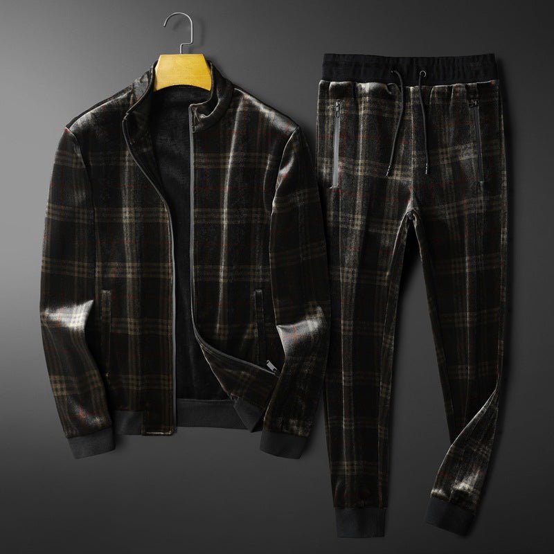 Elevate your wardrobe with the Jack Washington Black Velvet Set. This ensemble guarantees a sophisticated and fashion-forward appearance, capturing attention with its velvet-like texture and striking plaid pattern.