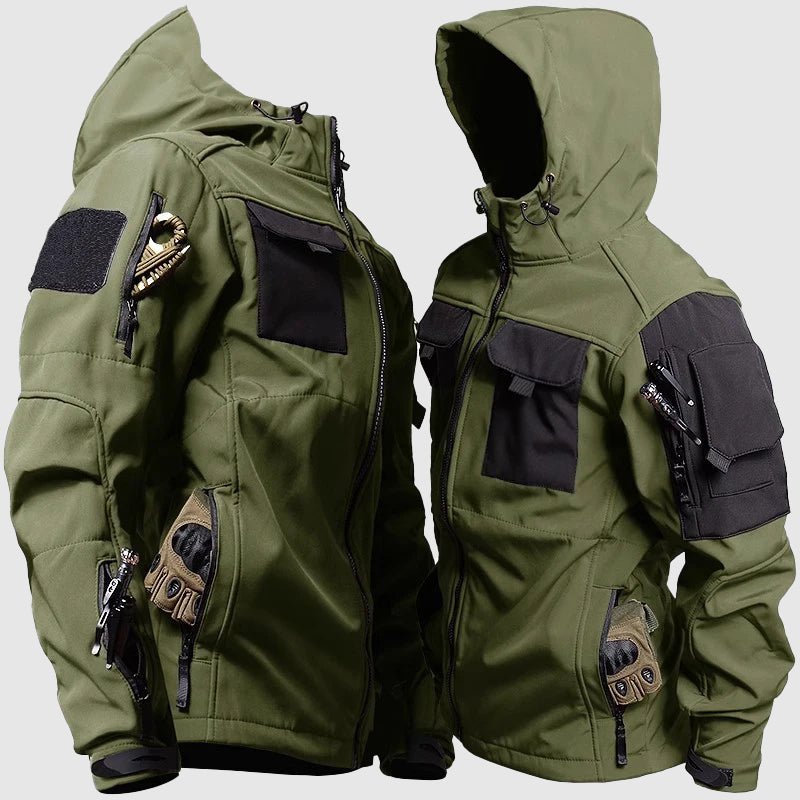 The Jack Washington Hunter Windbreaker Set set, comprising a jacket and pants, seamlessly combines military-inspired functionality with cutting-edge features to ensure you stay comfortable and protected in challenging conditions.