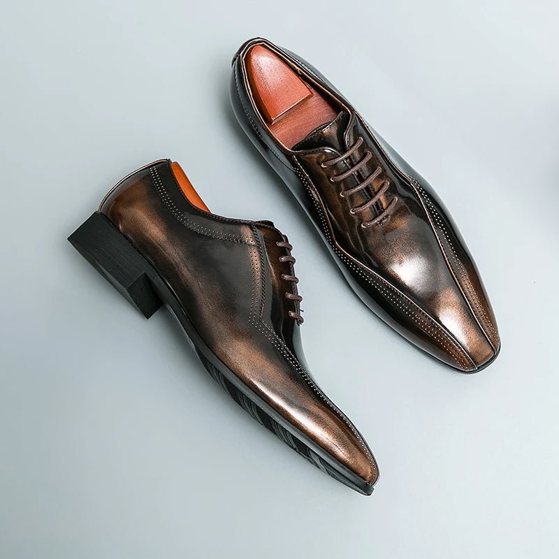These sophisticated shoes feature a sleek square toe design, offering a modern twist on a classic silhouette. Crafted with meticulous attention to detail, the Laredo Dress Shoes boast a lace-up closure for a secure and adjustable fit. Their lacquered finish adds a touch of sophistication, making them the perfect choice for formal occasions or upscale events.