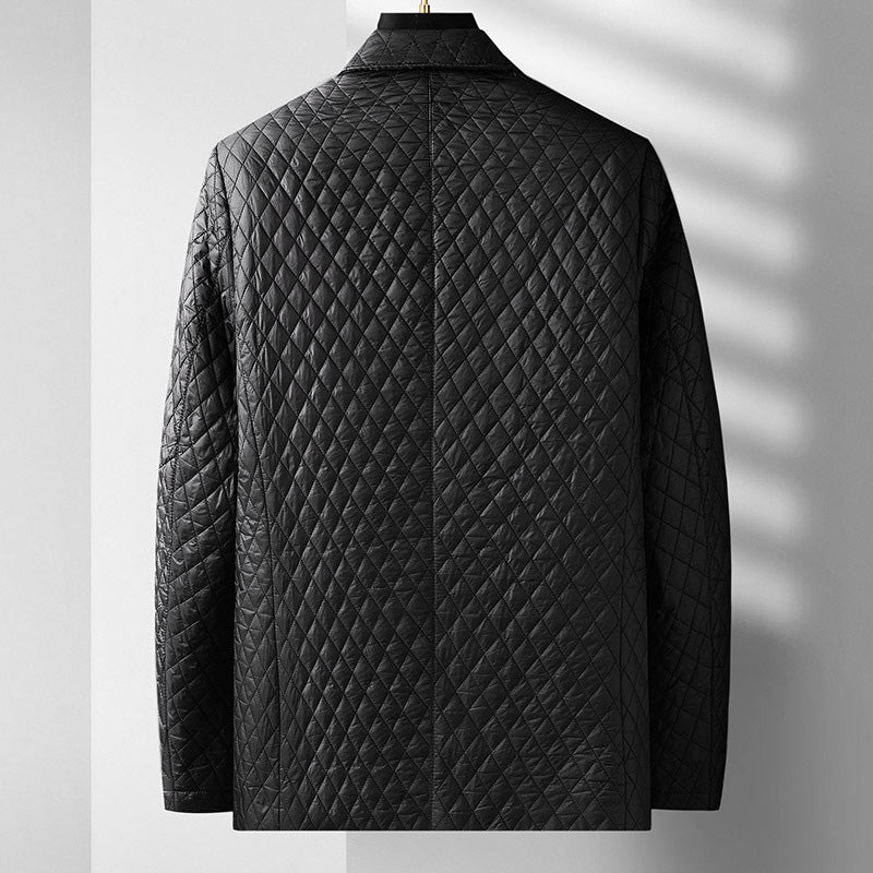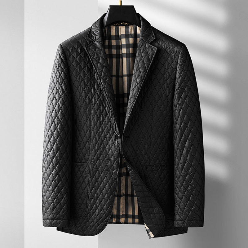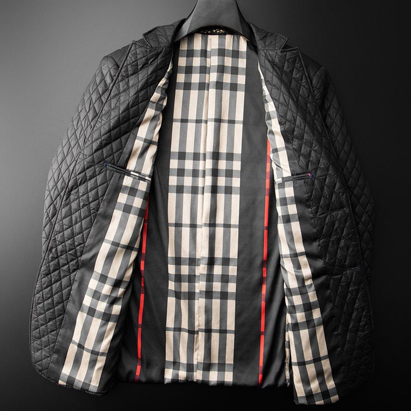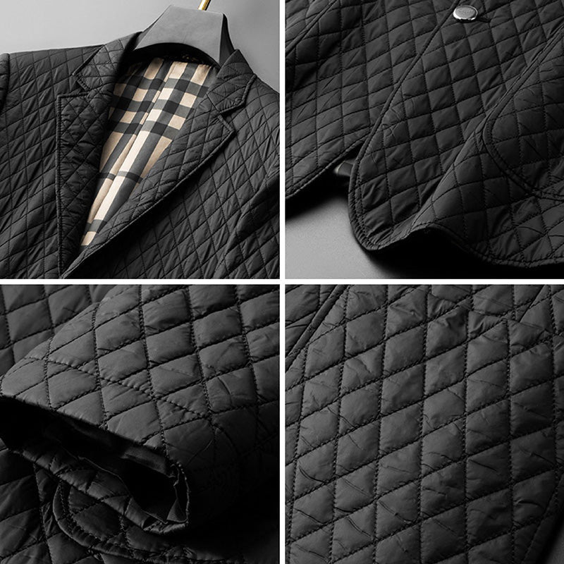 Whether you're dressing up for a special event or adding a touch of elegance to your everyday look, our Jack Washington Midnight Diamond Jacket with its diamond pattern, inner chest pocket, and button closure is the epitome of versatile style.