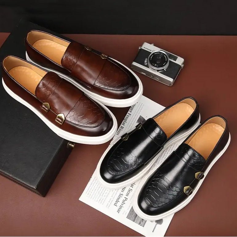 Step into sophisticated luxury with the Jack Washington Serpentine Loafers. The subtle serpentine texture elevates these loafers beyond the ordinary, transforming them into conversation starters.