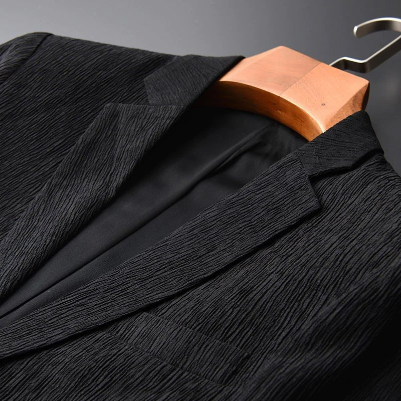 The Jack Washington Timeless Elegance Ensemble seamlessly merges sophistication with comfort. The blazer features notch lapels and intricate stitch details, elevating its classic silhouette with modern flair. Paired effortlessly, the jogging bottoms offer a tailored fit, complete with an elasticated waistband and adjustable drawstrings.