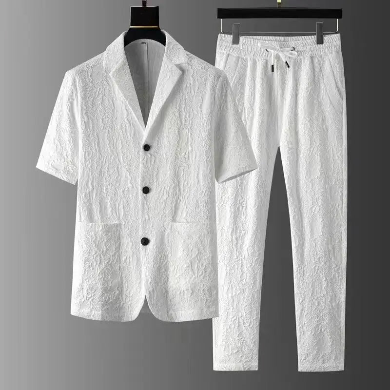 Add a touch of charm to your everyday look with the James Scott Casual Charm Duo Set. This set combines comfort and style effortlessly with a T-shirt and matching pants. The elastic waist ensures a comfortable fit, making it a versatile addition to your wardrobe.