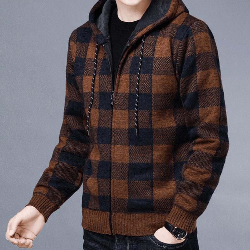 Stay warm and stylish with the James Scott Checkered Casual Jacket, a winter essential that combines a timeless plaid design with a cozy, thickened fabric. This hooded jacket is crafted to bring both comfort and flair to your casual winter wardrobe, perfect for a variety of occasions.