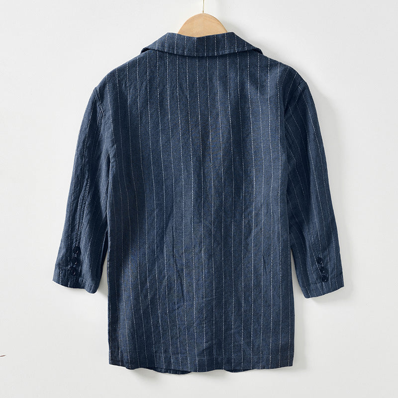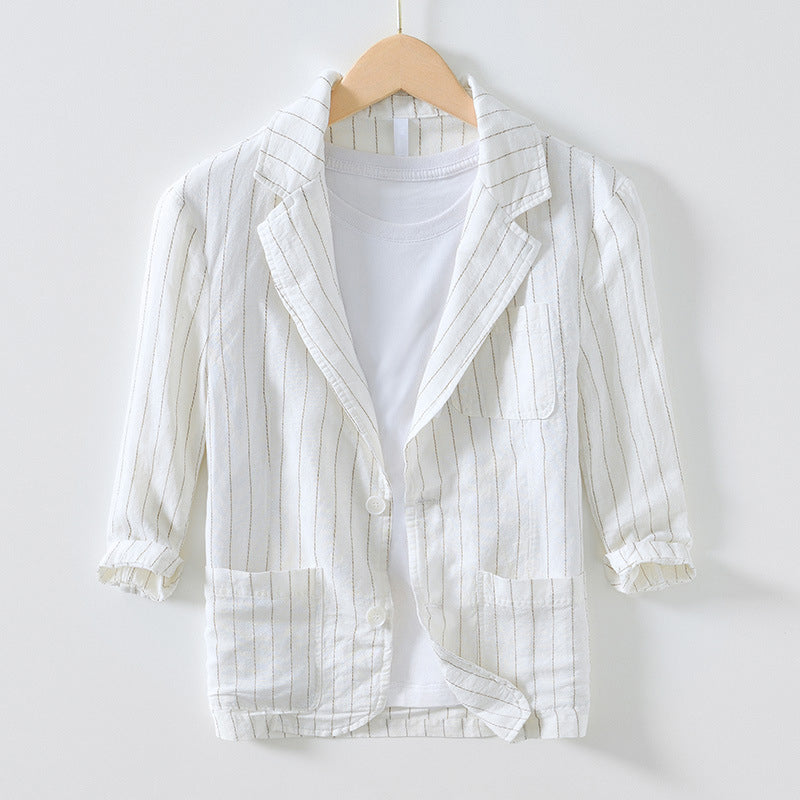 Unfurl the essence of sun-kissed elegance with the James Scott Côte d'Azur Linen Blazer, a testament to the art of refined repose. Imagine the gentle caress of the finest linen, each thread meticulously chosen and lovingly woven to create a fabric that breathes with the rhythm of the Mediterranean sun.