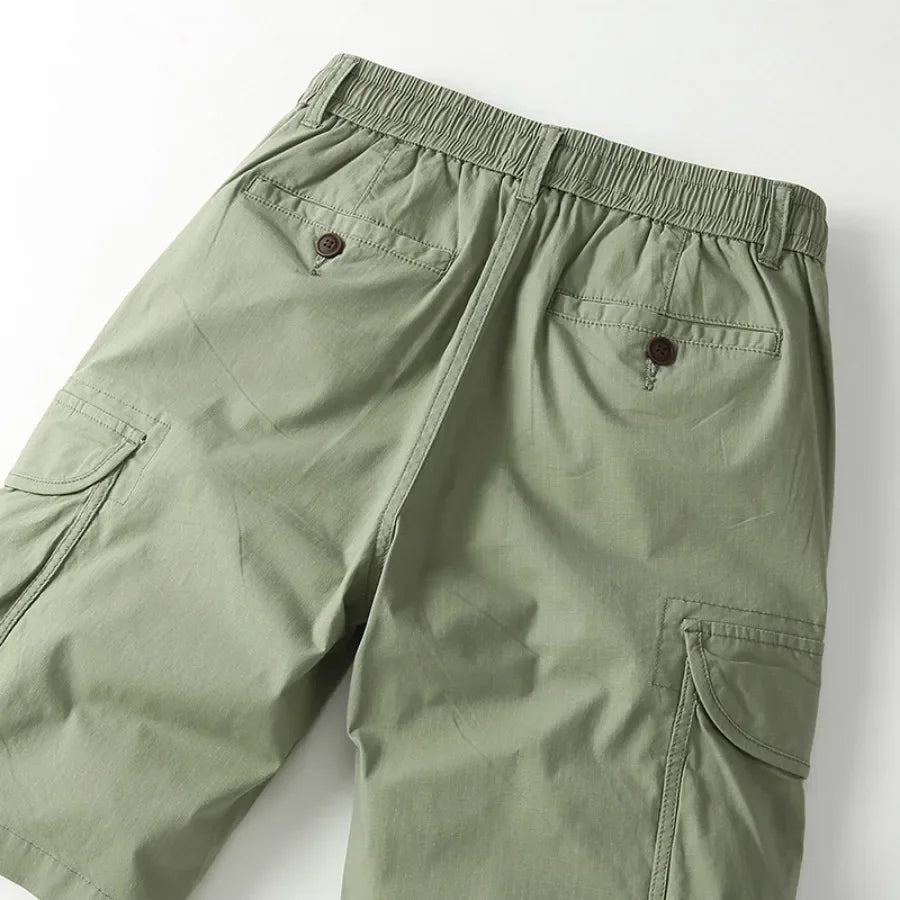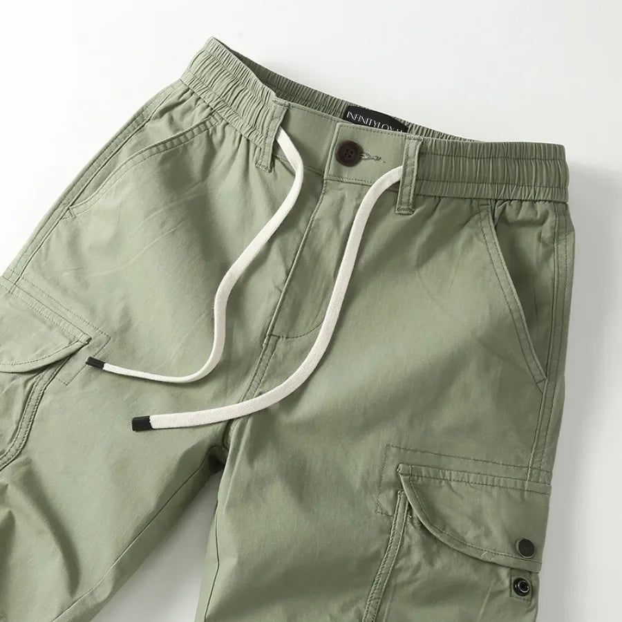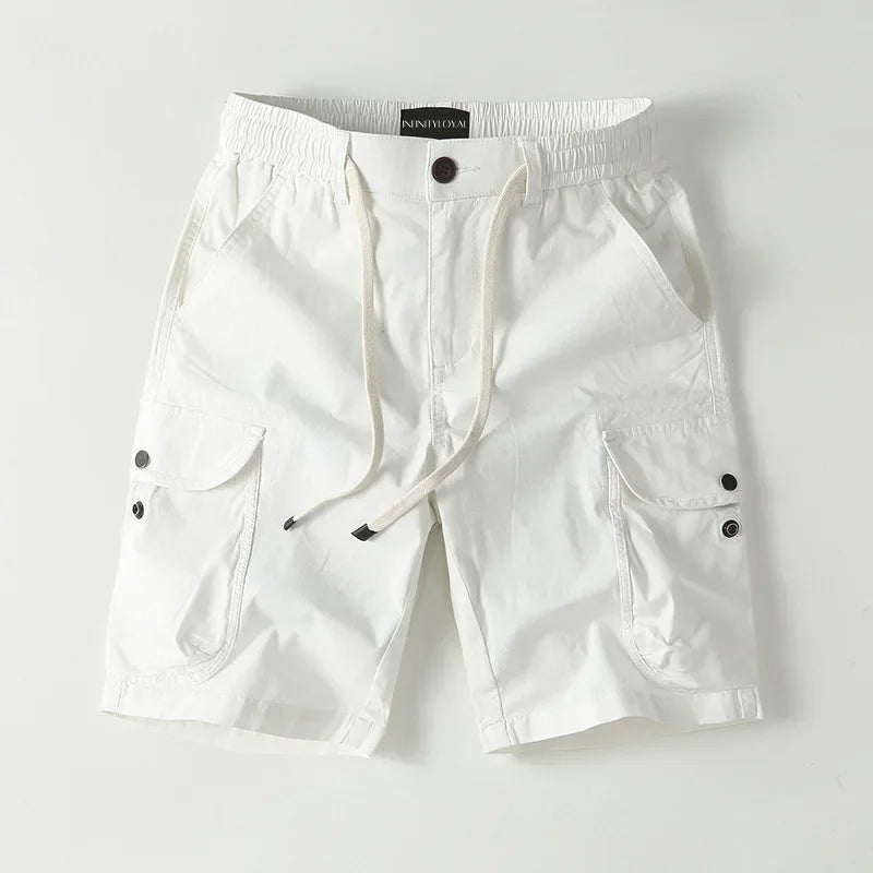 Introducing the James Scott Metro Cargo Shorts by Btsukimi—your go-to pair for effortless style and unbeatable comfort this spring and summer. Crafted from a perfect blend of soft cotton and durable polyester, these knee-length shorts feature a mid-waist fit with a drawstring closure, ensuring a relaxed yet secure feel for all-day wear.