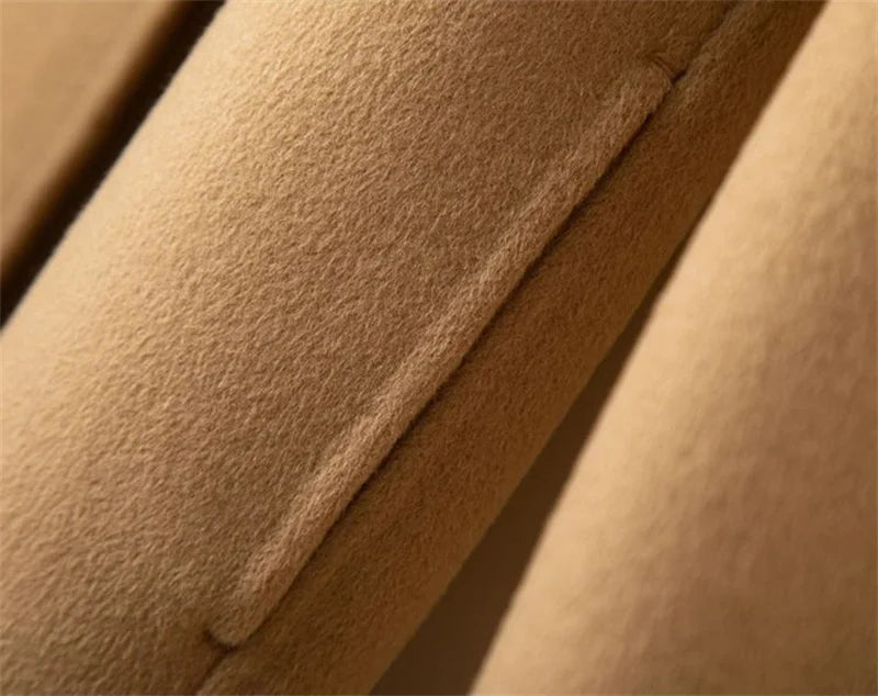 Spun from pure wool, this midi-length coat features a structured collar and a self-tie belt that shapes the silhouette with finesse. Its rich texture conveys enduring warmth and a noble character, suited to both casual wear and formal gatherings.