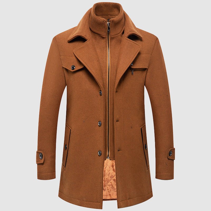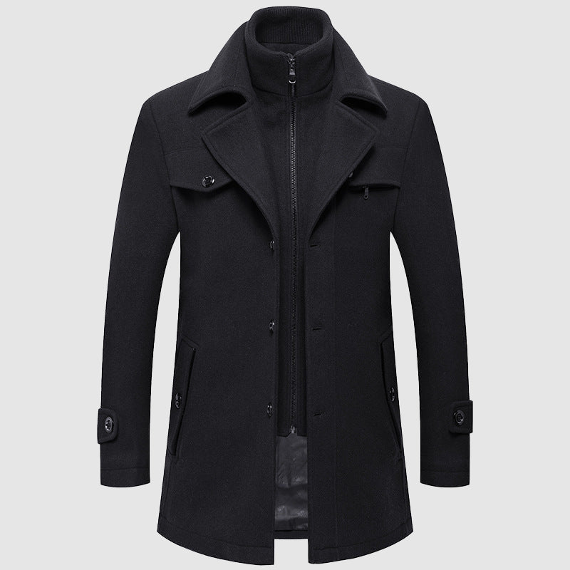 The Milan Business Woolen Coat epitomizes sophistication with its elegant design. This versatile coat features a detachable second collar, allowing you to effortlessly switch between a classic single-collar look and a stylish double-collar appearance.