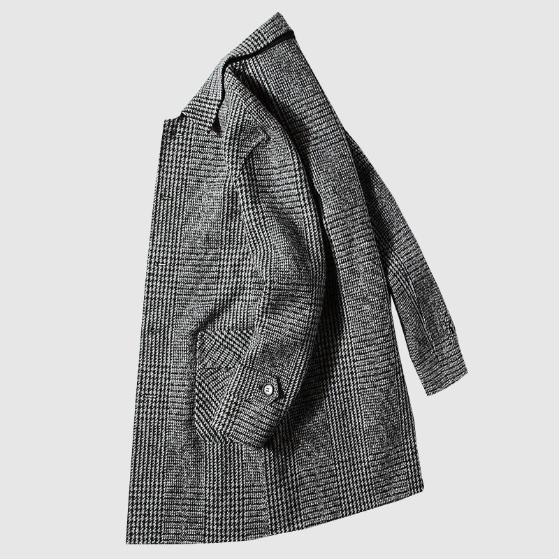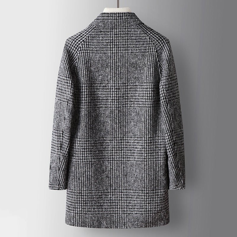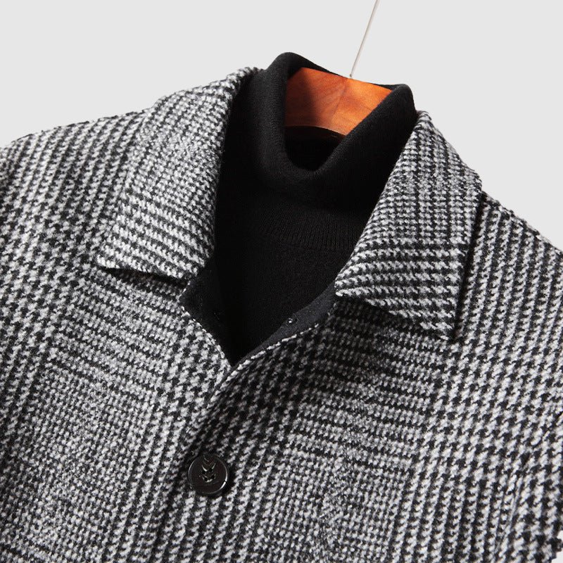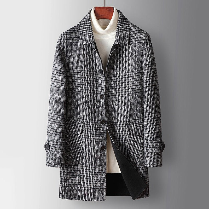 Prepare for winter with the Nobleman's Woolen Plaid Coat — a tasteful fusion of style and warmth. Its mid-length silhouette and practical two front pockets make it an embodiment of timeless charm, catering to the preferences of discerning gentlemen.
