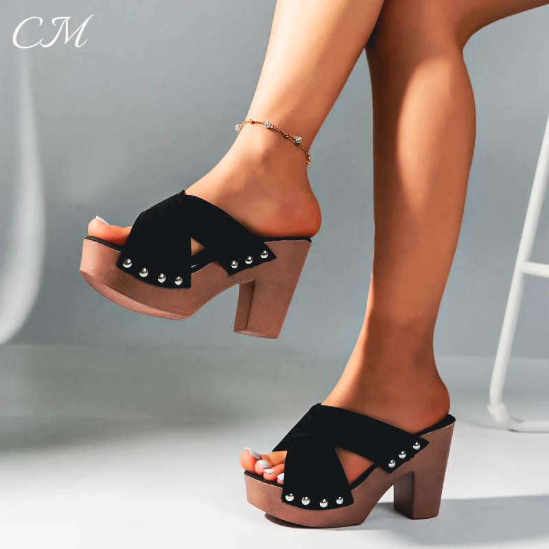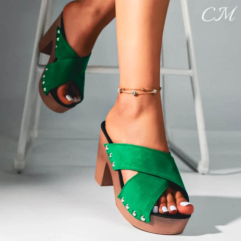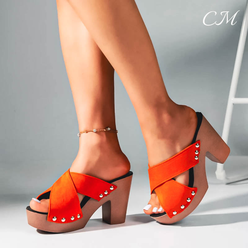 Angular straps crisscross at the vamp of this eye-catching sandal, offering a stylish design with just the right amount of lift. Enjoy the confidence of extra height while staying comfortable with a soft, bouncy footbed.