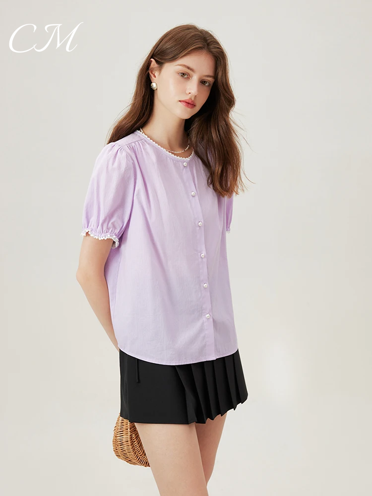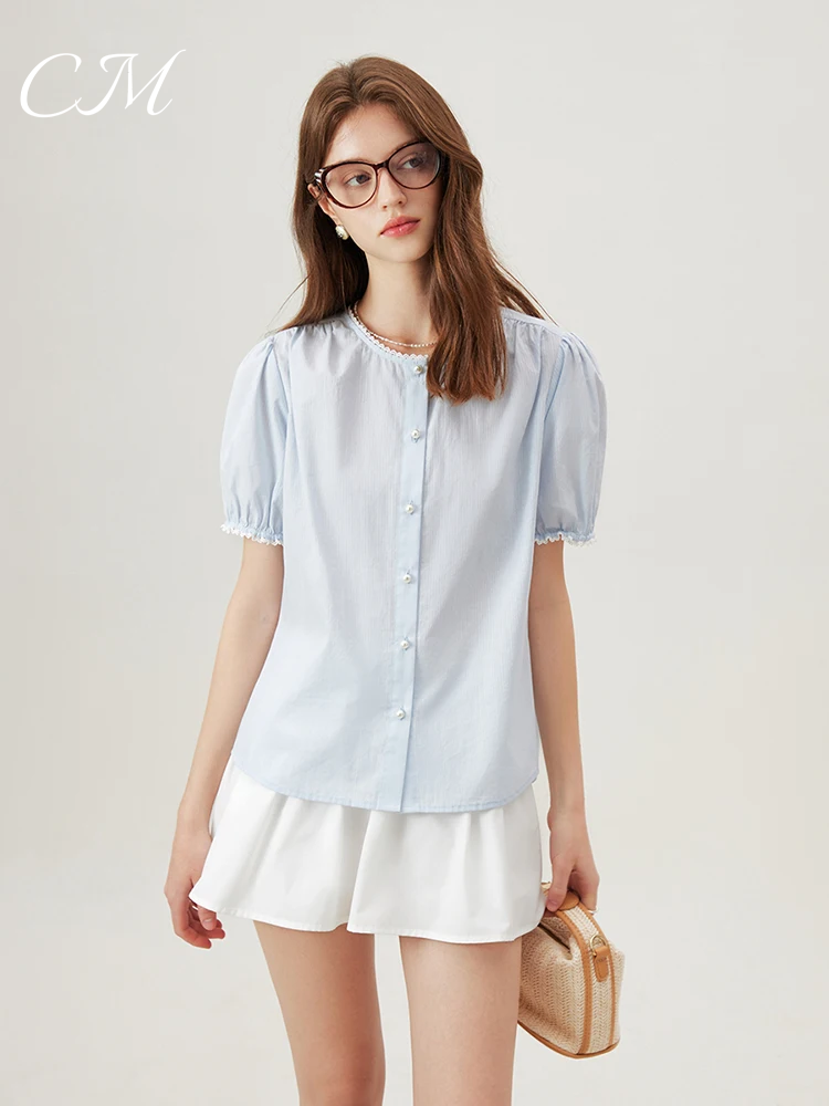 Laid-back yet put-together, this button-up blouse features a classic design, lightweight cotton blend and a classic fit that's easy to layer or wear solo. With its gentle puff sleeves and elegant pearl buttons, this blouse is a symbol of grace and timeless beauty.