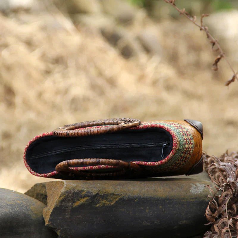 Elevate your style with the Sofie Malou Boho Woven Bag, a captivating masterpiece meticulously handcrafted from bamboo straw and cotton. Its intricate patterns exude artistic charm, making it the perfect statement piece for fashion-forward individuals.