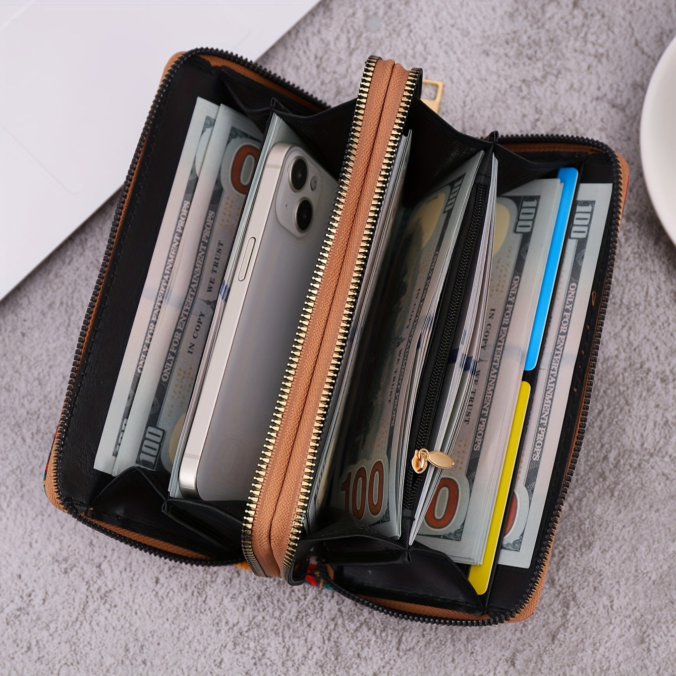 Crafted from eco-friendly cork with a durable, water-resistant finish, this wallet showcases intricate bohemian and mosaic patterns. Dual-zip compartments and a spacious interior accommodate your phone, cash, coins, and cards, while multiple card slots offer organized access. A detachable wrist strap provides versatile carrying options.