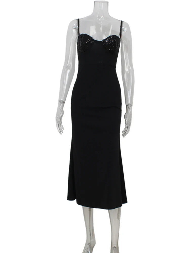 Women’s Evening Dress – Slim Fit – Sequin Bust – Satin Feel – Sweetheart Neckline – Floor Length