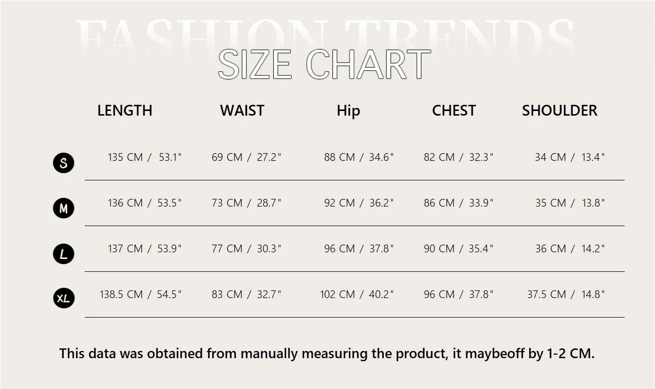 | Size | Bust (in) | Waist (in) | Hips (in) |