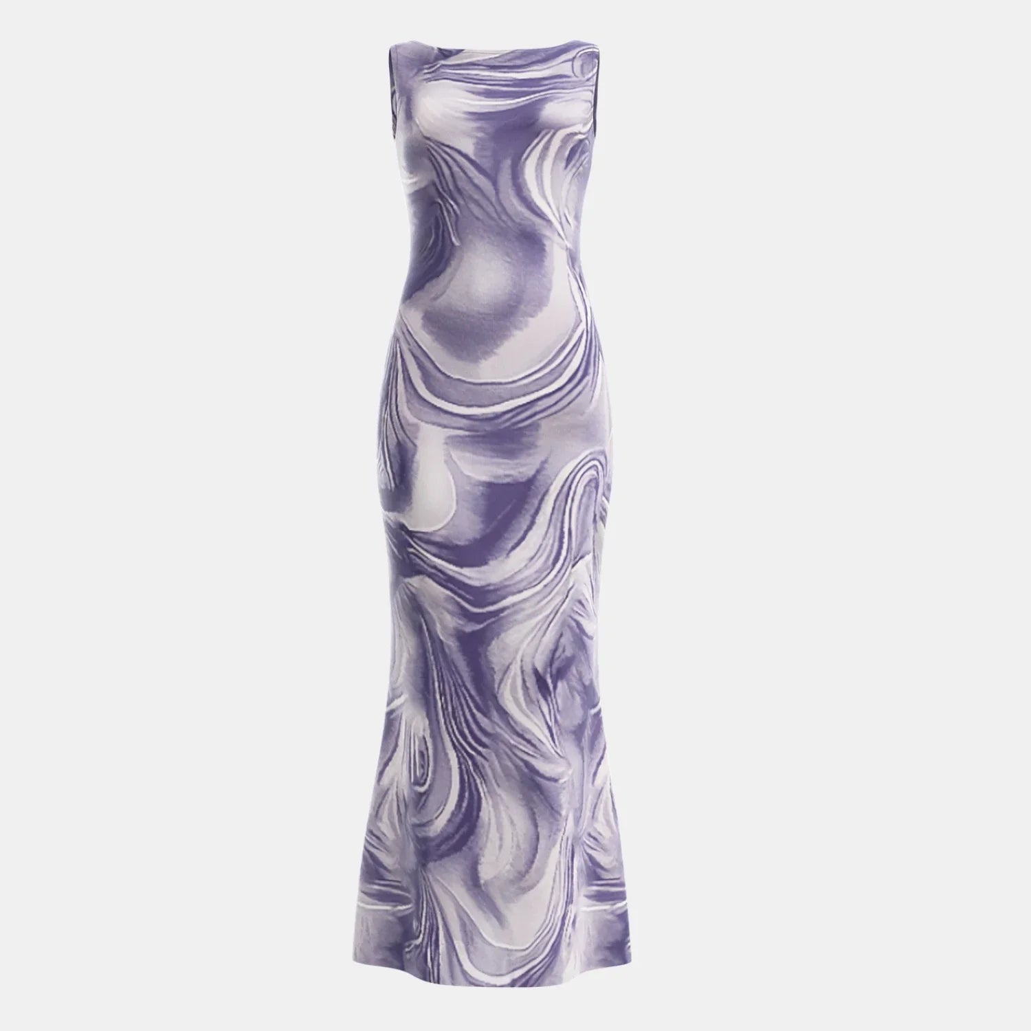 Women’s Maxi Dress – Bodycon Fit – High Neck Sleeveless – Stretch Fabric – Abstract Print