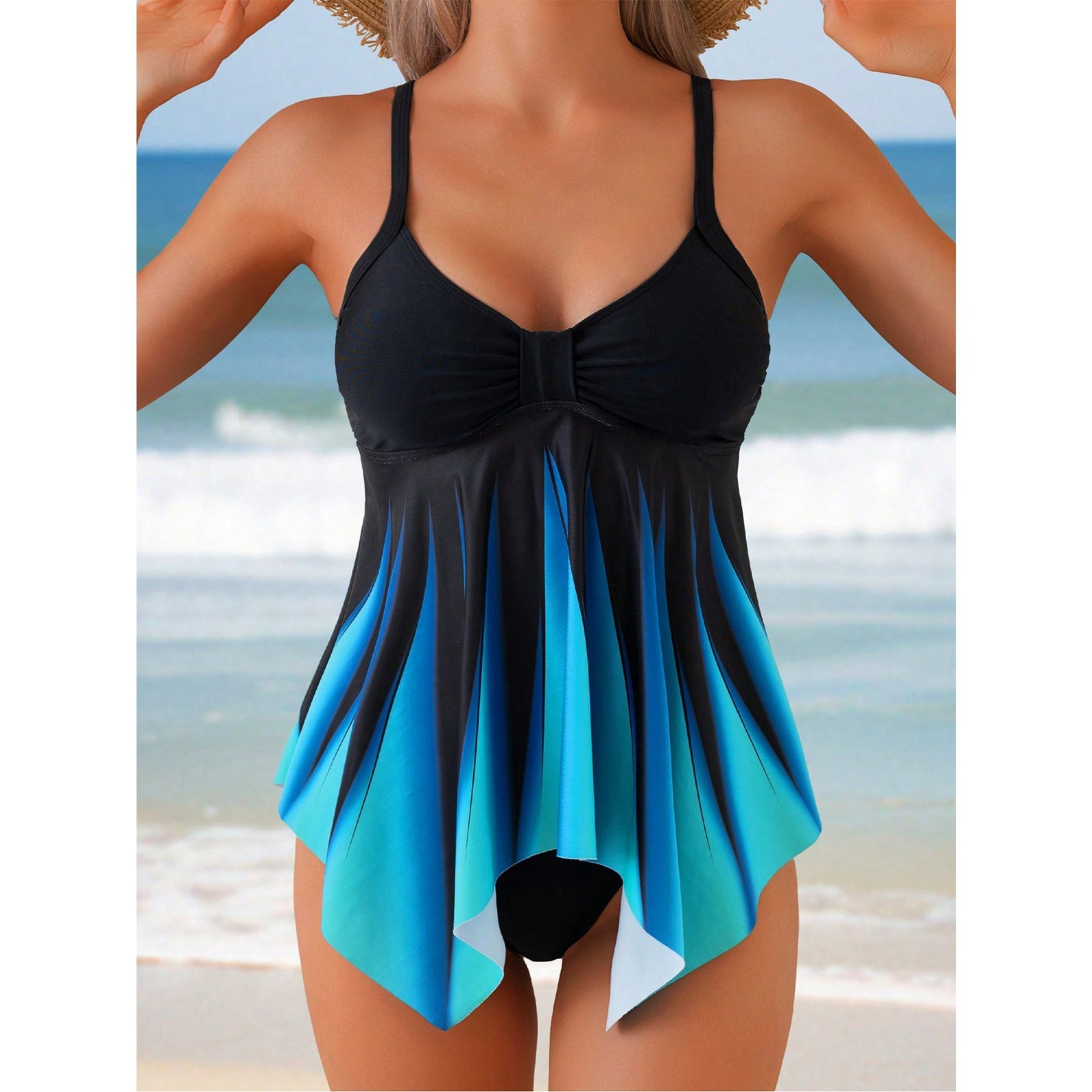Pair this tankini top with your favorite swim shorts and sandals for a chic beach look, or add a wide-brimmed hat for extra sun protection.