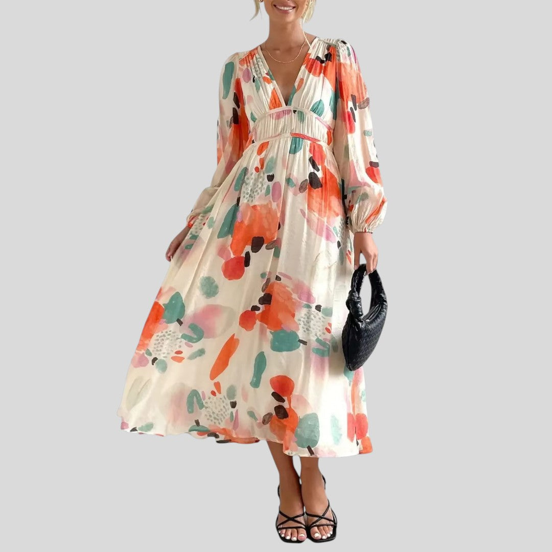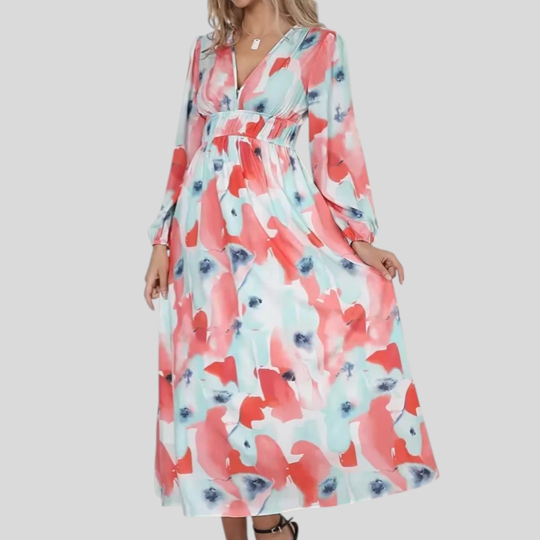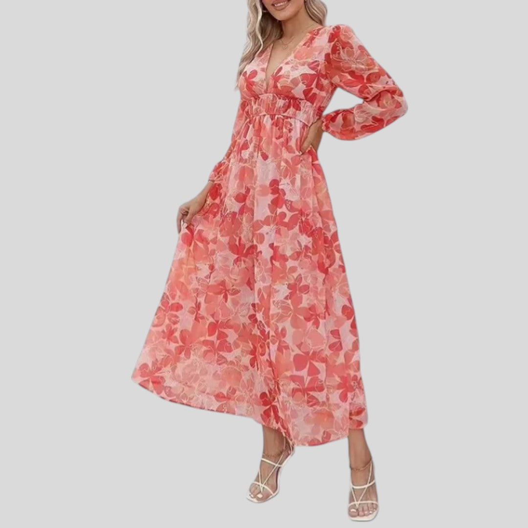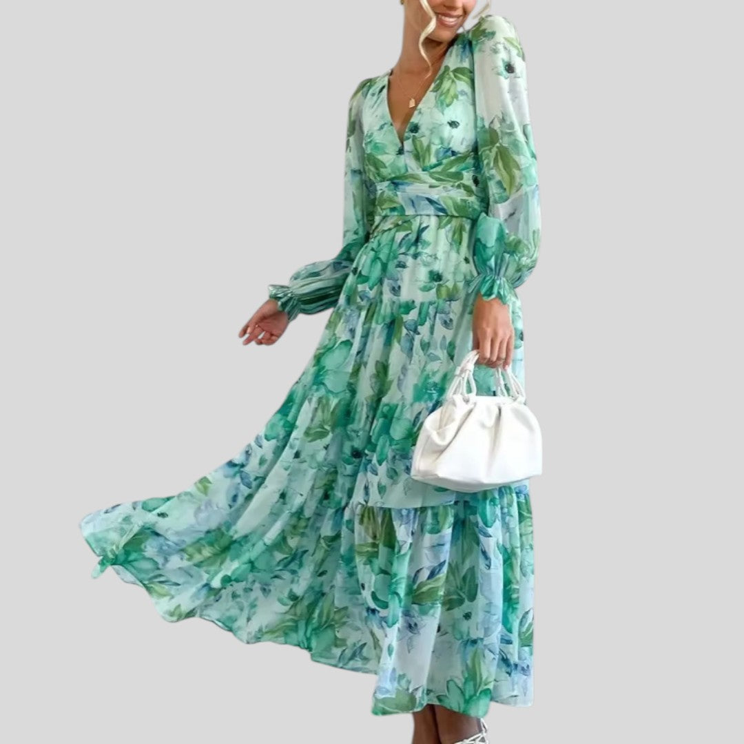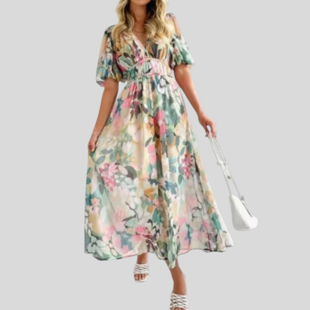 This elegant floral dress features a soft, flowing silhouette and delicate print that brings out your feminine side with ease. Ideal for special moments or simply feeling beautiful on a warm day, it's timeless and flattering from every angle.
