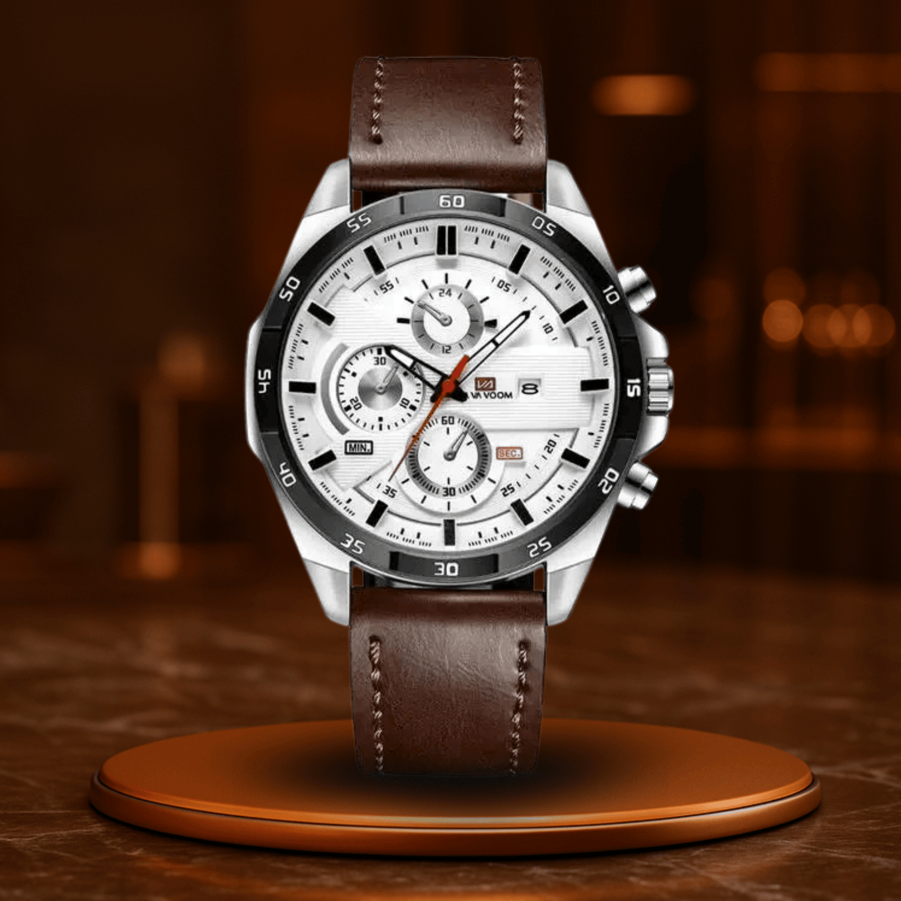 The fine leather strap ensures comfort and a classic look, while the luminous dials and the calendar-based organization ensure that you can keep track even in the dark. Stylish. Strong. Versatile.