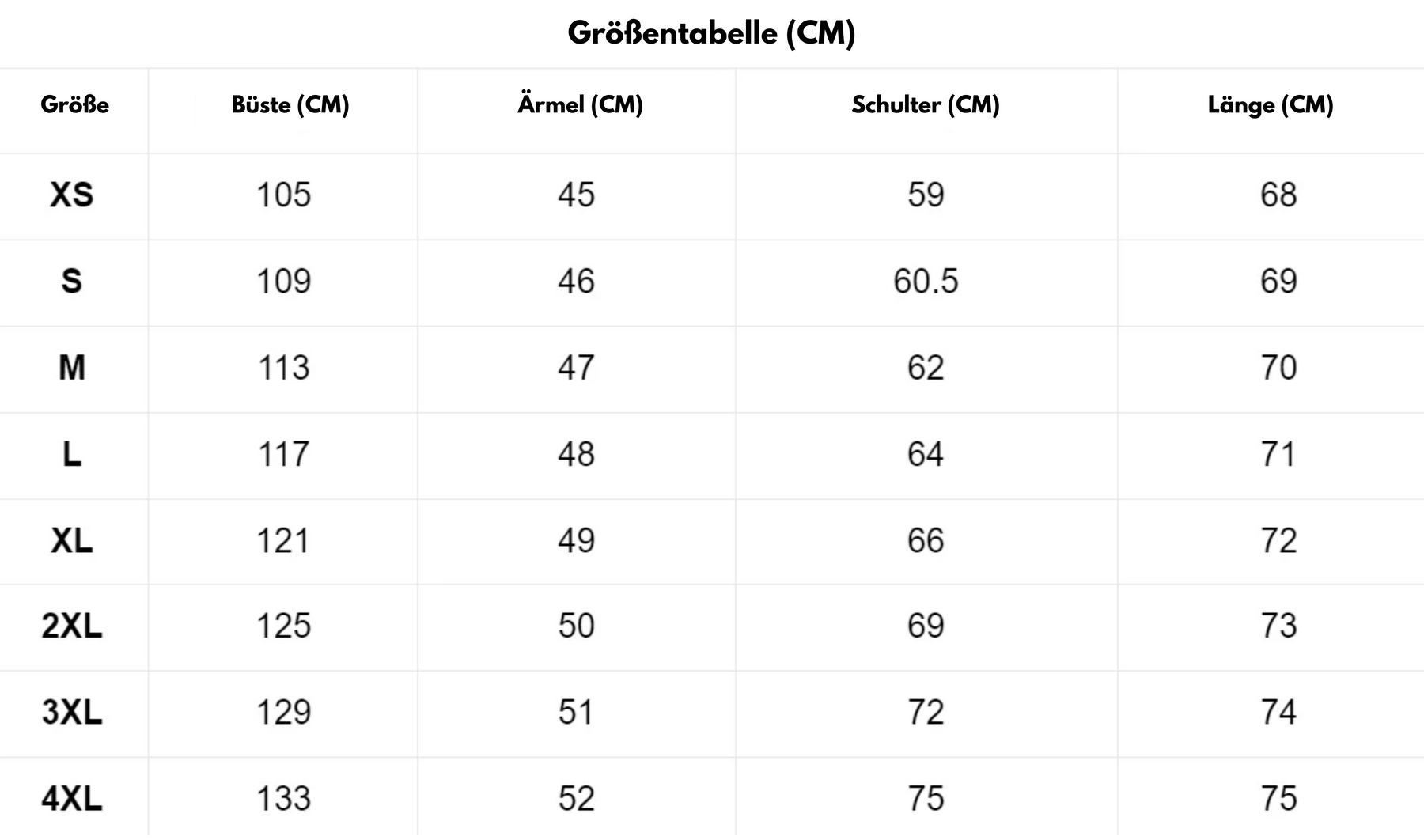 Size Chart for Men’s Tops (shirts, sweatshirts, jackets)