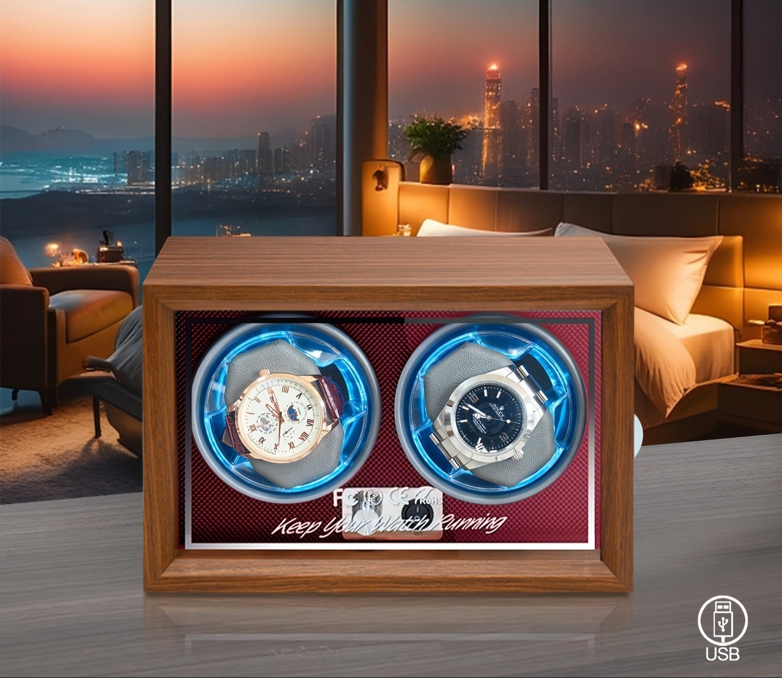 The ZOEJOE Automatic Watch Winder is the perfect solution to keep your watches always ready for use. With an elegant black walnut design and a soft memory foam cushion, it offers stylish and secure storage for your timepieces. The Open-Lid-Stop technology ensures easy access, while the four rotation modes keep your watches in optimal condition. USB powered for maximum convenience – ideal for collectors and daily use.