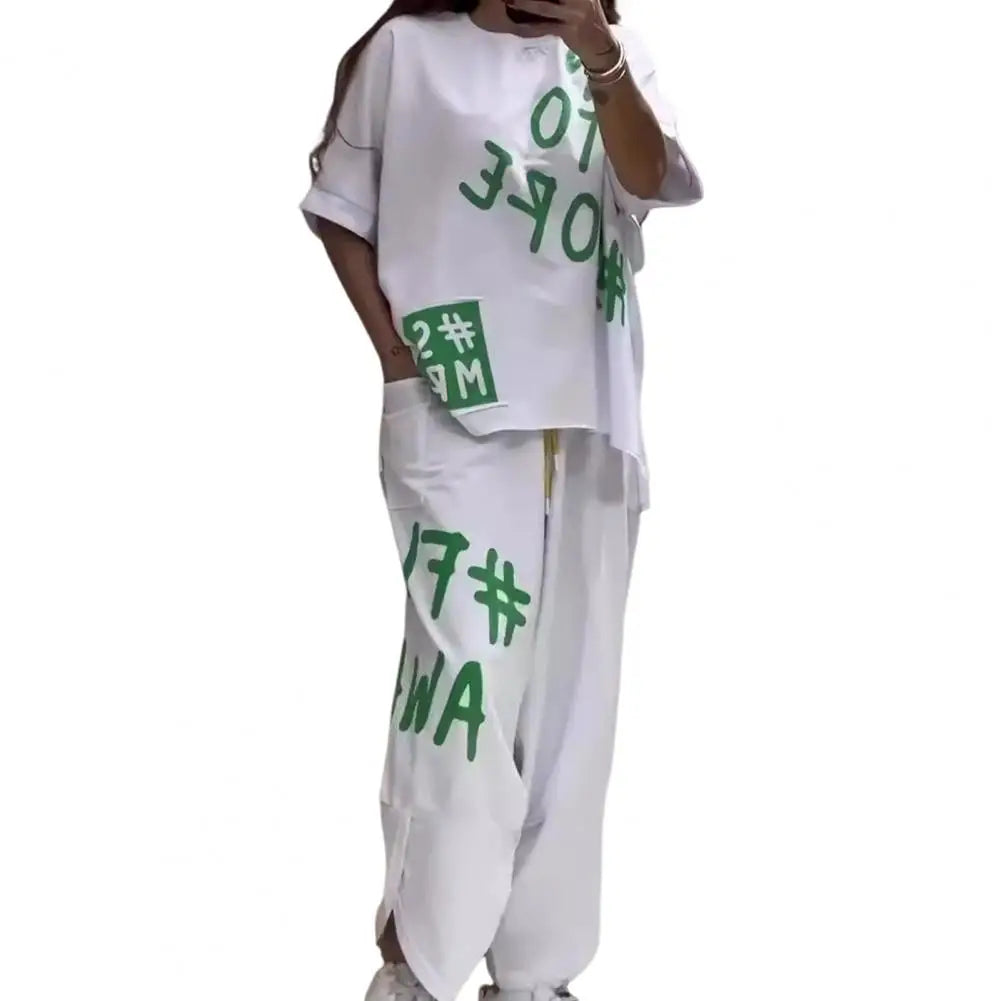 Bring energy and personality to your summer wardrobe with the Juliana – Casual Summer Letter Print Outfit. Perfect for those who love making a statement while staying cool and comfortable, this set is your go-to for fun, laid-back style with a modern twist.