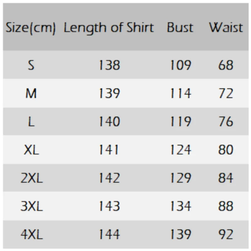 | Size | Bust (in) | Waist (in) | Hips (in) |
