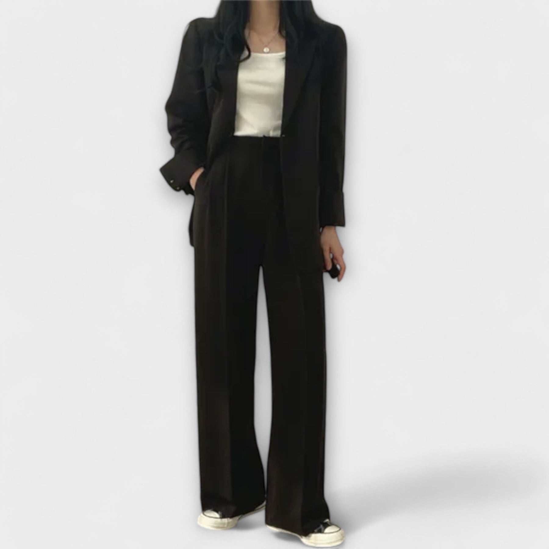Upgrade your professional wardrobe with Nova Women's Two-Piece Set, a classic suit set that exudes class and elegance. This timeless set is ideal for business meetings, formal occasions, and any event where you want to make a sophisticated impression. Made from high-quality materials, the set ensures a comfortable fit and long-lasting durability. The tailored trousers and elegant blazer create a flattering silhouette that highlights your confidence and style.