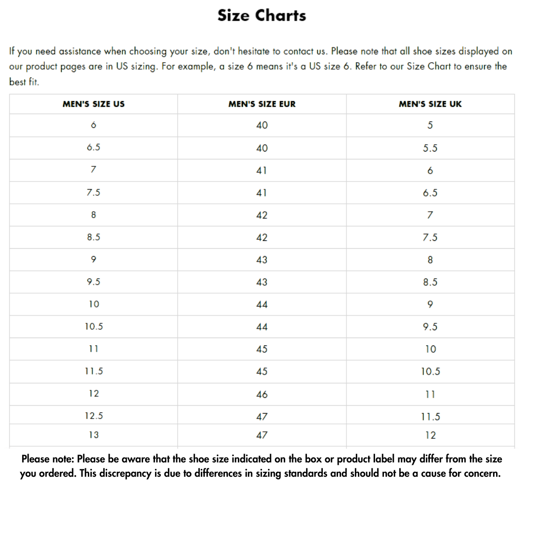| EU Size | UK Size | US Size | Foot Length (in) |