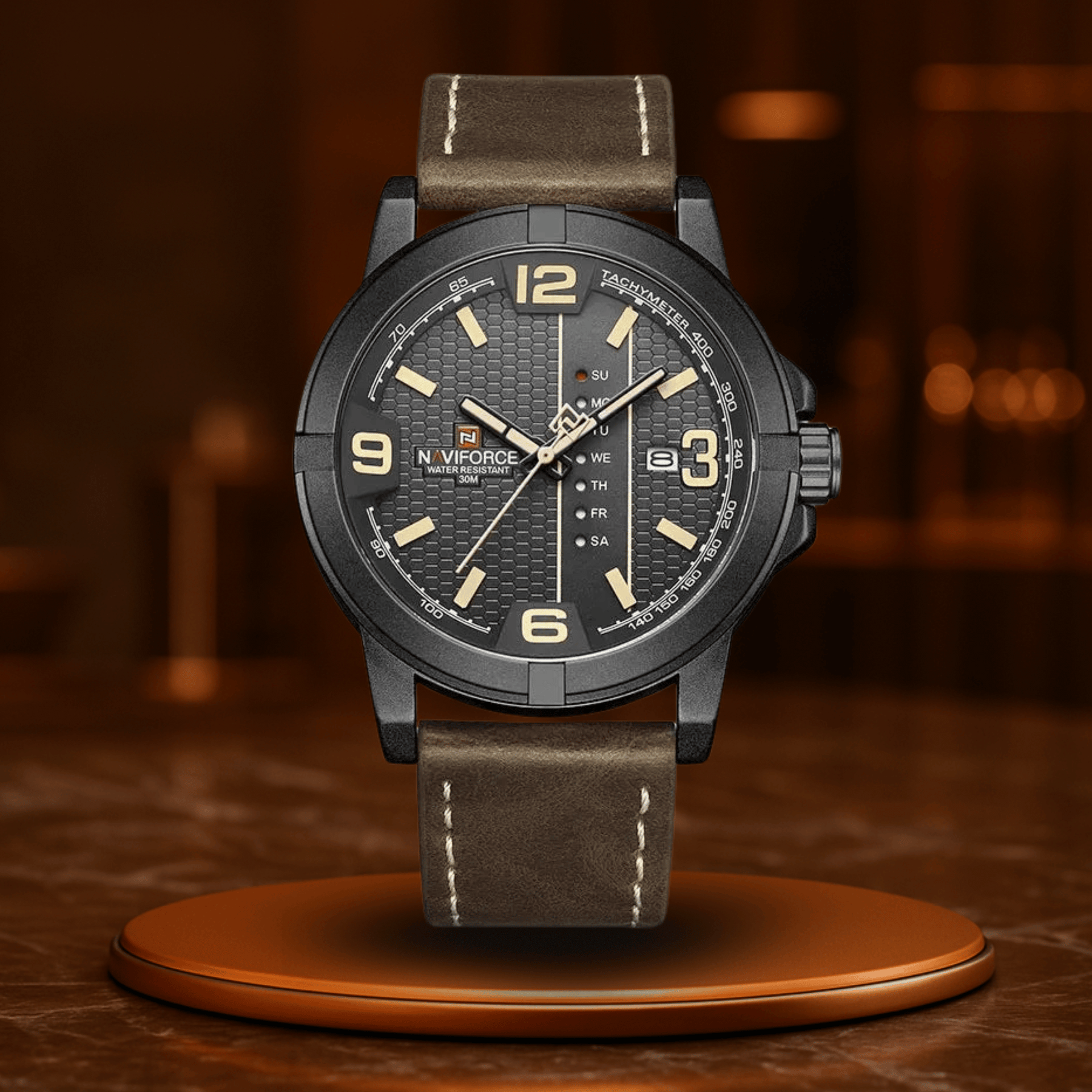 With date and week display, luminous hands, and water-resistant construction, it is a masterpiece of understatement – made for men who do not need to explain themselves.